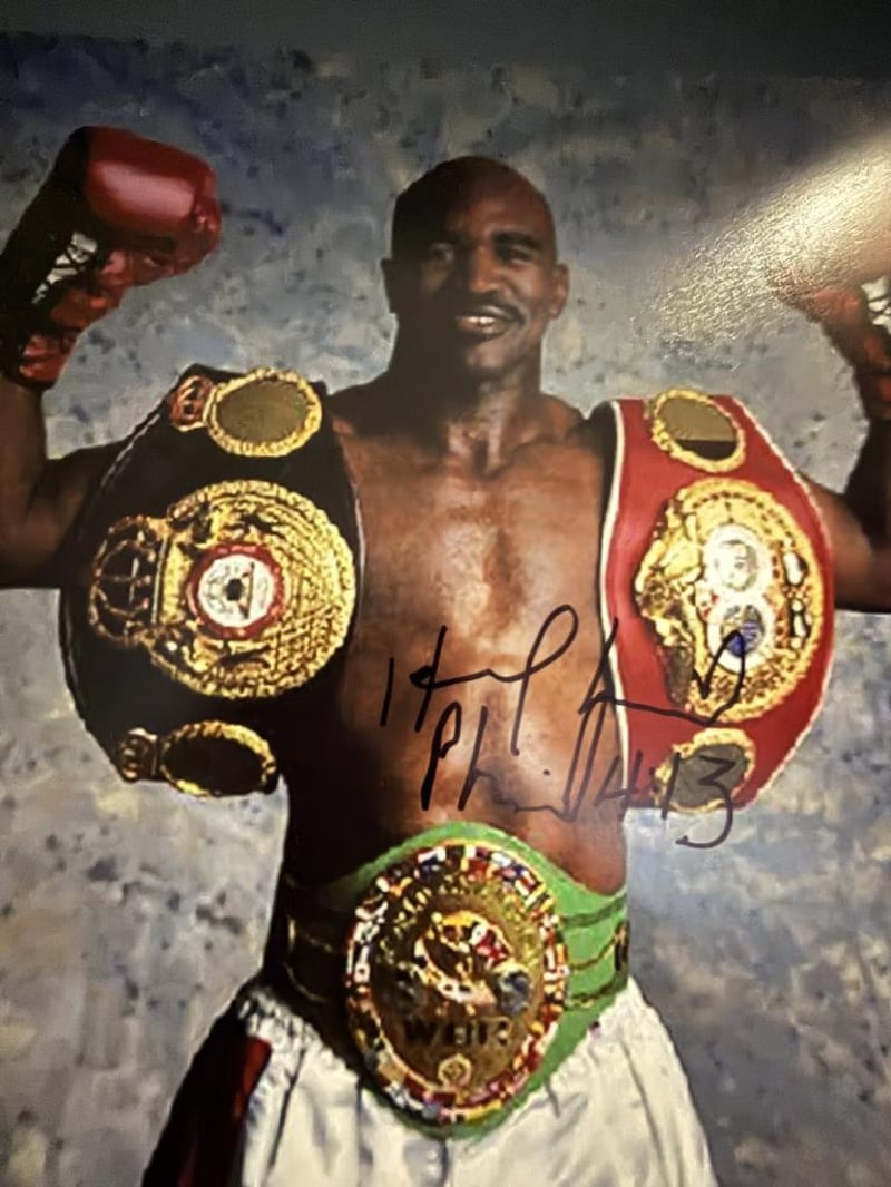 EVANDER HOLYFILD SIGNED BELTS PHOTOEvander Holyfield Personally Signed World Titles 10 X 8 Photo. The Item Is Accompanied By A Certificate Of Authenticity.585011+16