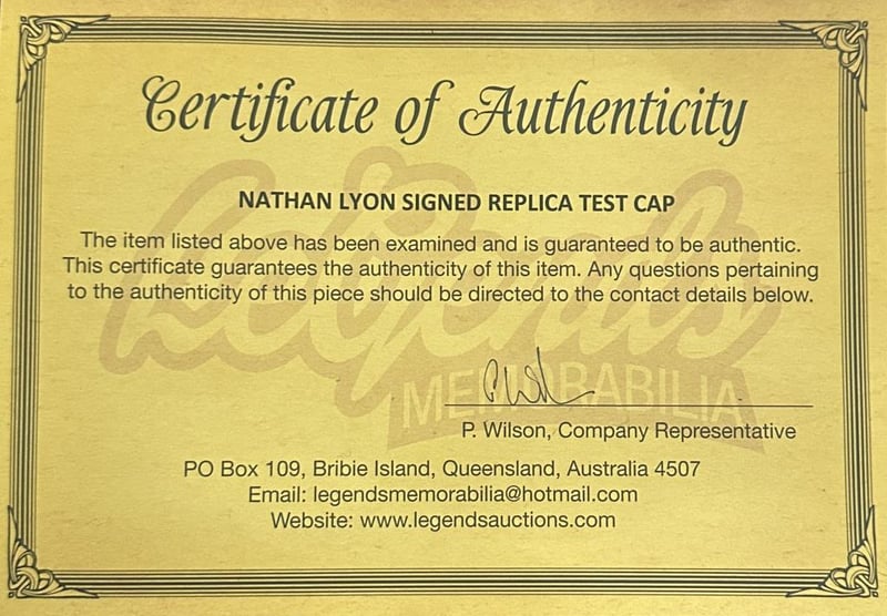 Nathan Lyon Personally Signed Australia Replica Test Cap. Nathan Lyon Is An Australian International Cricketer. Lyon Made His Debut In 2011 And Plays Domestic Cricket For New South Wales. The Item Is Accompanied By A Certificate Of Authenticity.