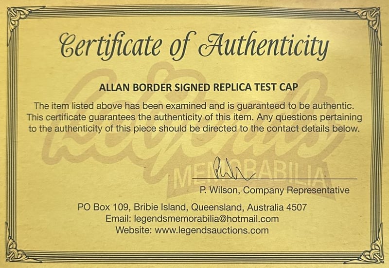ALLAN BORDER SIGNED REPLICA TEST CAP