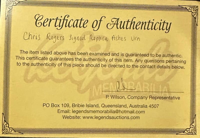 CHRIS ROGERS SIGNED REPLICA ASHES URN