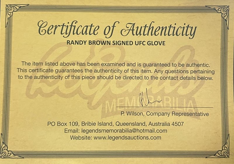 Ufc Glove Personally Signed By Randy Brown. Randy Brown Is A Jamaican-American Professional Mixed Martial Artist. Brown Currently Competes In The Welterweight Division Of The Ultimate Fighting Championship. The Item Is Accompanied By A Certificate Of Authenticity.