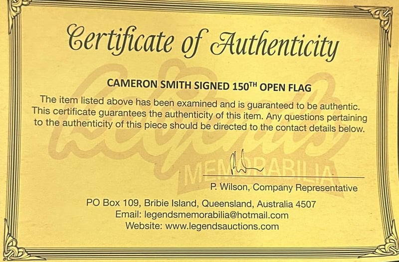 Cameron Smith Personally Signed 150Th Open Flag. Cameron Smith Is An Australian Professional Golfer Who Currently Plays On The Liv Golf League. The Item Is Accompanied By A Certificate Of Authenticity.