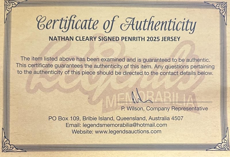 2025 Penrith Panthers Jersey Personally Signed By Nathan Cleary. Nathan Cleary Is An Australian Professional Rugby League Footballer Who Co-Captains And Plays As A Halfback For The Penrith Panthers In The Nrl. The Item Is Accompanied By A Certificate Of Authenticity.