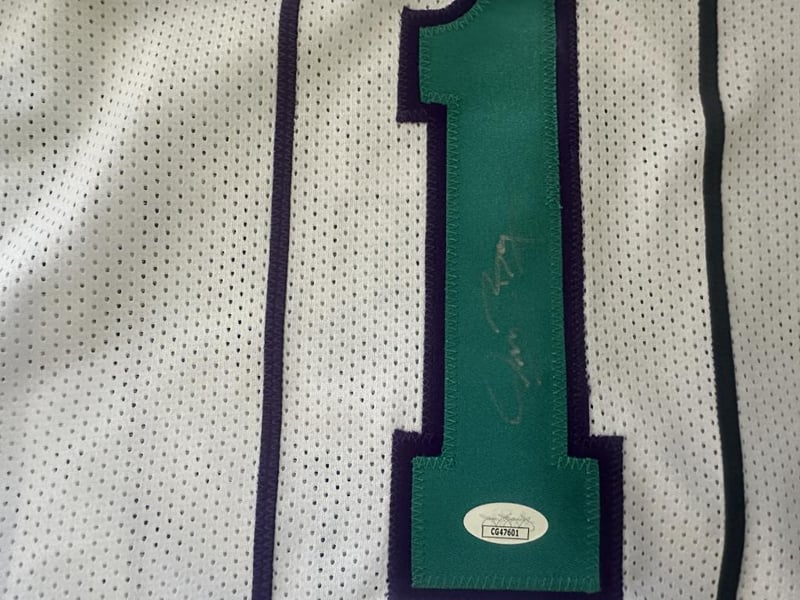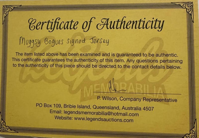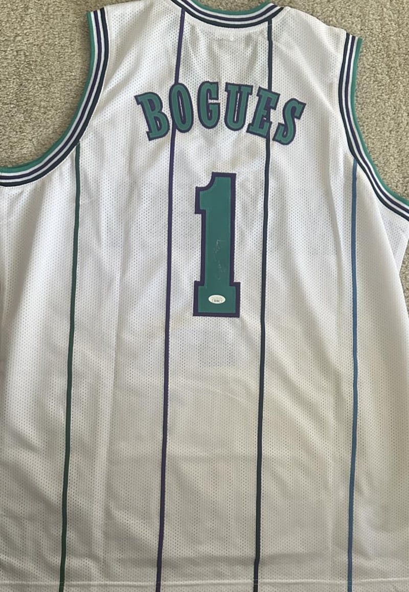 Muggsy Bogues Personally Signed Jersey. Tyrone Curtis "Muggsy" Bogues Is A Former American Basketball Player. The Shortest Player Ever To Play In The Nba. The 5 Ft 3 Bogues Played Point Guard For Four Teams During His 14-Season Career. The Item Is Accompanied By A Certificate Of Authenticity.