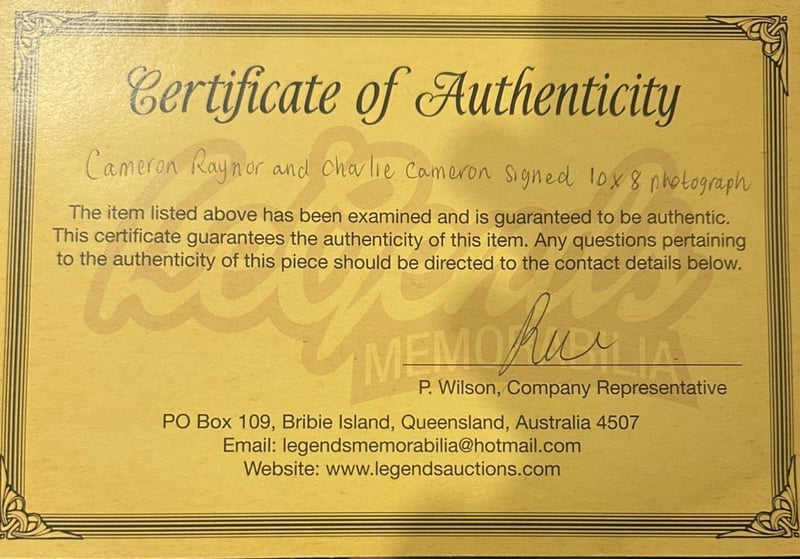 CAMERON RAYNOR & CHARLIE CAMERON SIGNED PHOTO