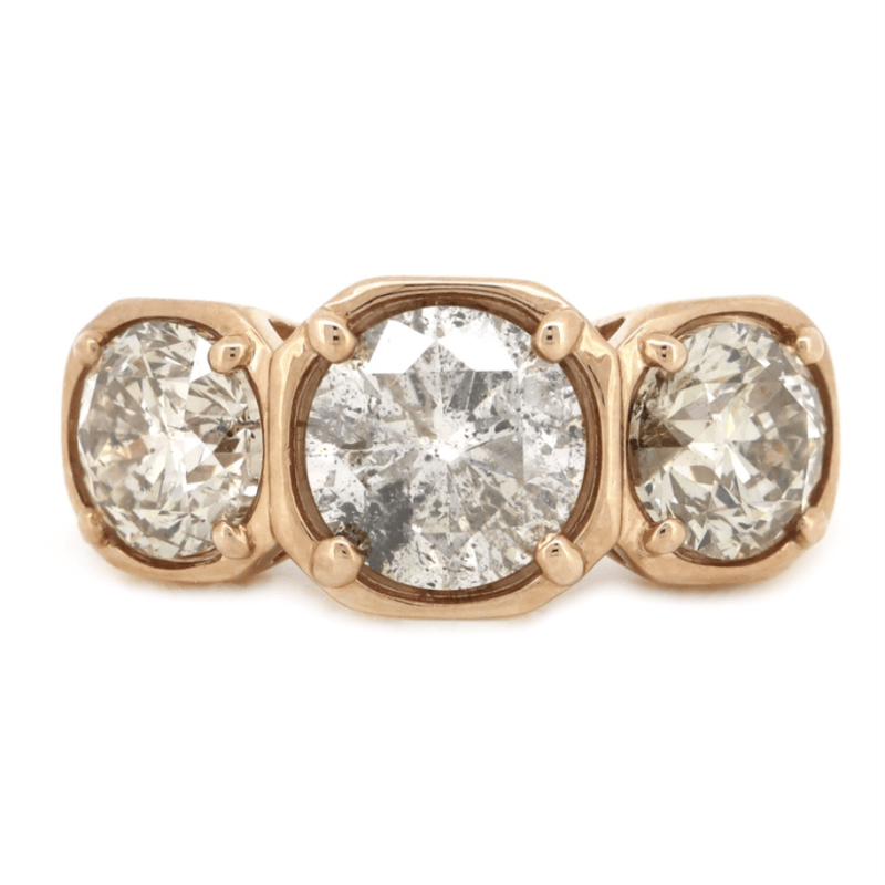 The Centre Features, One Round Brilliant Cut, Diamond (3.05Ct, K-L Colour, Salt And Pepper Effect), Claw Set. Flanked On Each Side Are, 2 Round Brilliant Cut, Light Fancy Brown, Diamonds (4.03Ct Tdw, C3 Colour, Salt And Pepper Effect), Claw Set. Decorating The Band Are, 6 Round Brilliant Cut, Diamonds (0.06Ct Tdw, J-K Colour, P2+ Clarity), Micro Bead Set. Ring Size N 1/2.