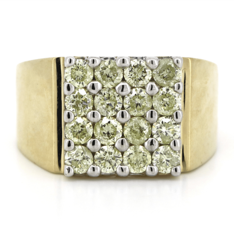 14K YELLOW GOLD, 3.09CT TDW FANCY YELLOW DIAMOND, GENTS CLUSTER RING.