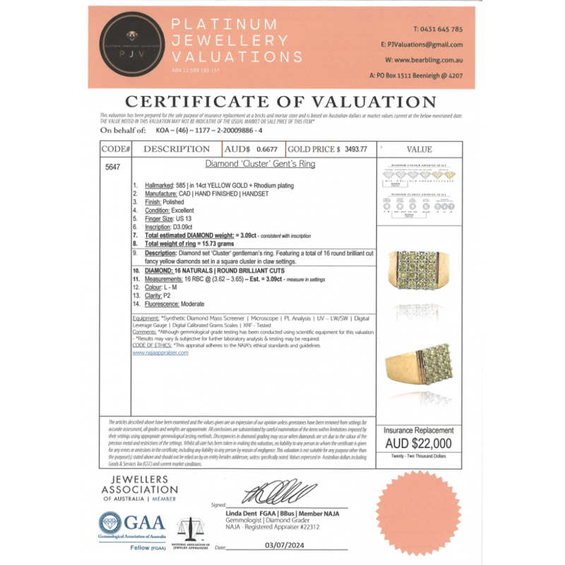 This Insurance Valuation has been provided by a registered Jewellery Valuer and is intended for insurance purposes only. The valuation amount has no bearing on the auction value of the item. Any questions regarding the valuation should be directed to the issuing Valuer (refer to contact details on the certificate) as Lloyds have no association or relationship with the Valuer or the valuation amount contained within the valuation.