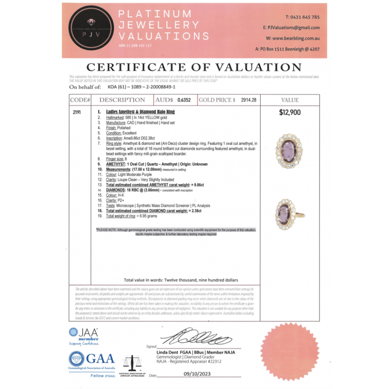 This Insurance Valuation has been provided by a registered Jewellery Valuer and is intended for insurance purposes only. The valuation amount has no bearing on the auction value of the item. Any questions regarding the valuation should be directed to the issuing Valuer (refer to contact details on the certificate) as Lloyds have no association or relationship with the Valuer or the valuation amount contained within the valuation.
