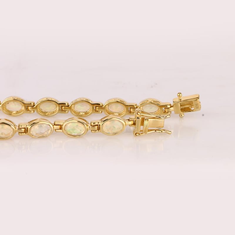 Perfect for any occasion, whether it be a sophisticated evening out or a casual day of elegance, this bracelet is a true statement piece. It offers a blend of contemporary style and timeless allure, making it a must-have addition to any jewelry collection. Elevate your style with the enchanting charm of Ethiopian Opal, and let your wrist sparkle with the colors of the universe.