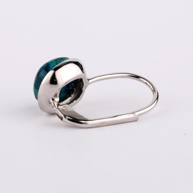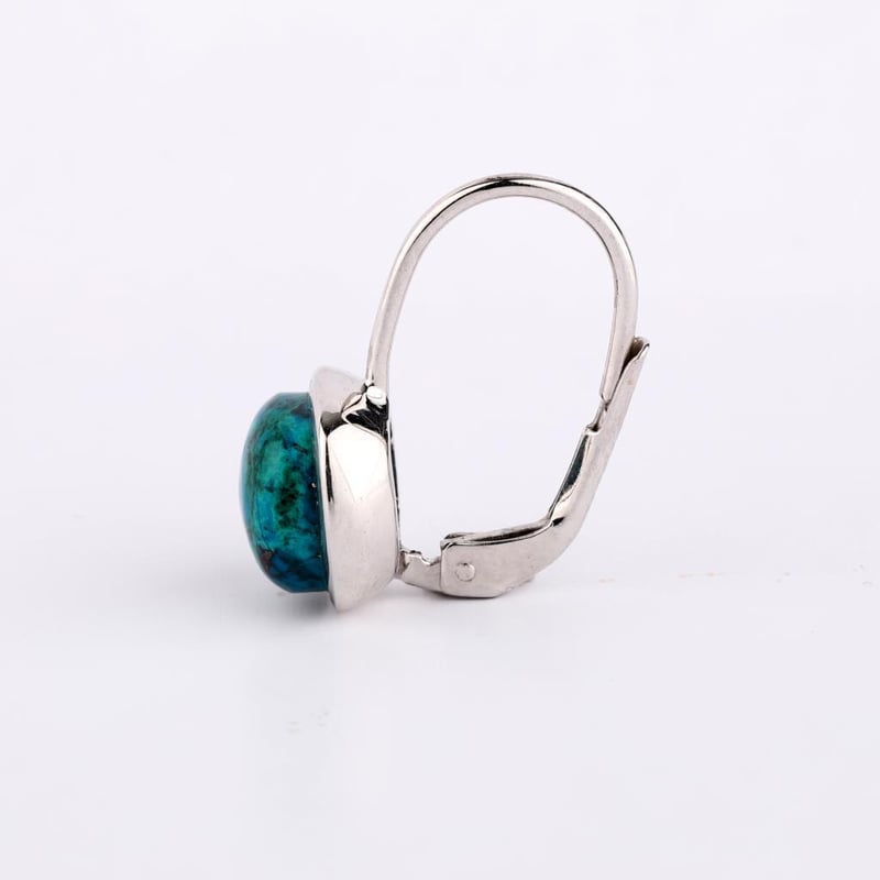 Whether you're dressing up for a special occasion or adding a touch of luxury to your everyday ensemble, these earrings are a timeless addition to any jewelry collection. Elevate your style and let the captivating allure of Chrysocolla reveal your inner radiance. Don’t miss the chance to own this exquisite pair that embodies the essence of refined beauty.