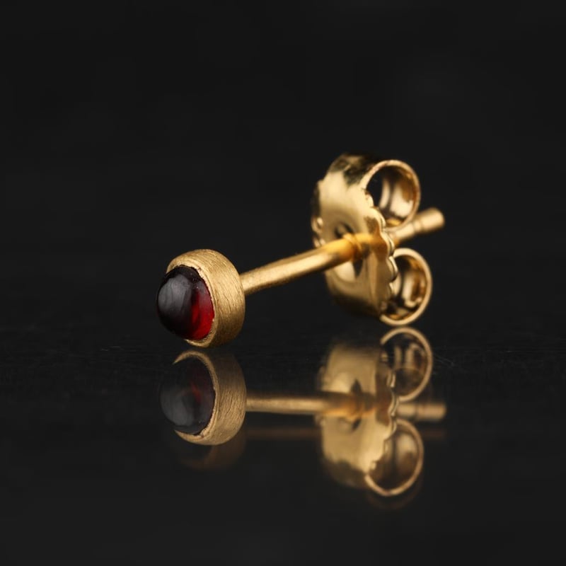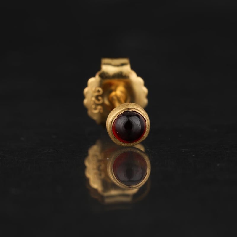 Indulge in the allure of these enchanting Garnet CAB Round Earrings, meticulously crafted to showcase the deep, captivating hues of garnet. Each earring features a stunning 3.00mm round cabochon garnet, exuding an air of sophistication and elegance that is simply irresistible. The matte finish adds a modern twist, beautifully enhancing the gemstone's natural beauty while offering a tactile experience that is both luxurious and contemporary.