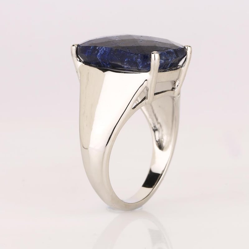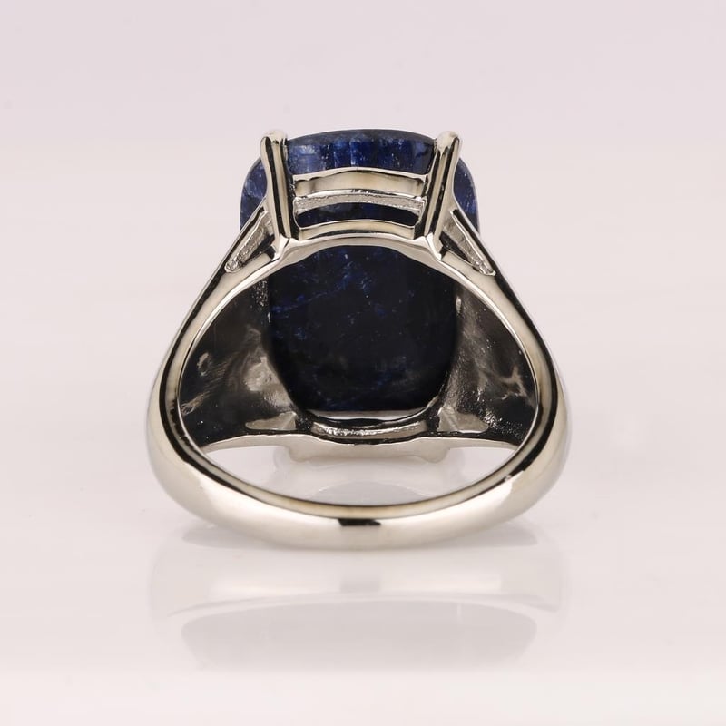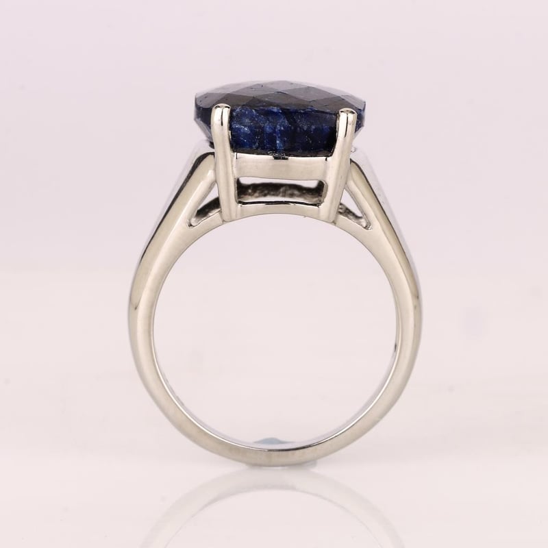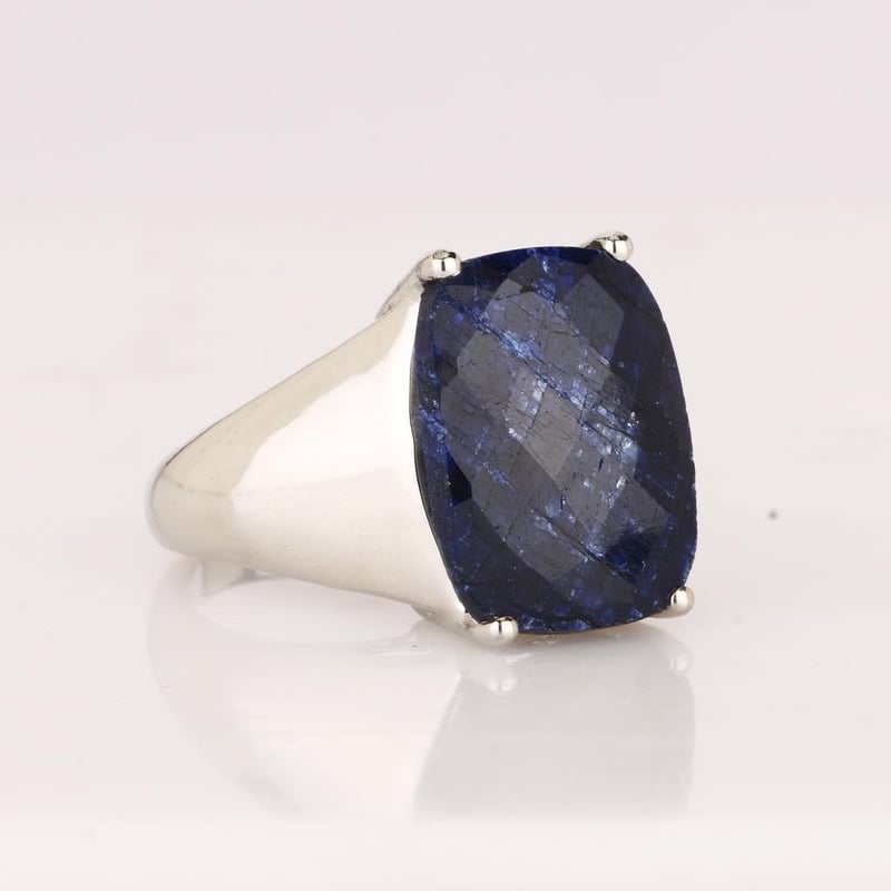 Indulge in the allure of exquisite craftsmanship with this stunning dyed sapphire checker board cushion ring. Measuring an impressive 16x12mm, this mesmerizing piece showcases a vibrant hue that captures the essence of luxury and sophistication. The unique checkerboard cut enhances the stone’s brilliance, reflecting light in a dazzling dance that is sure to turn heads.