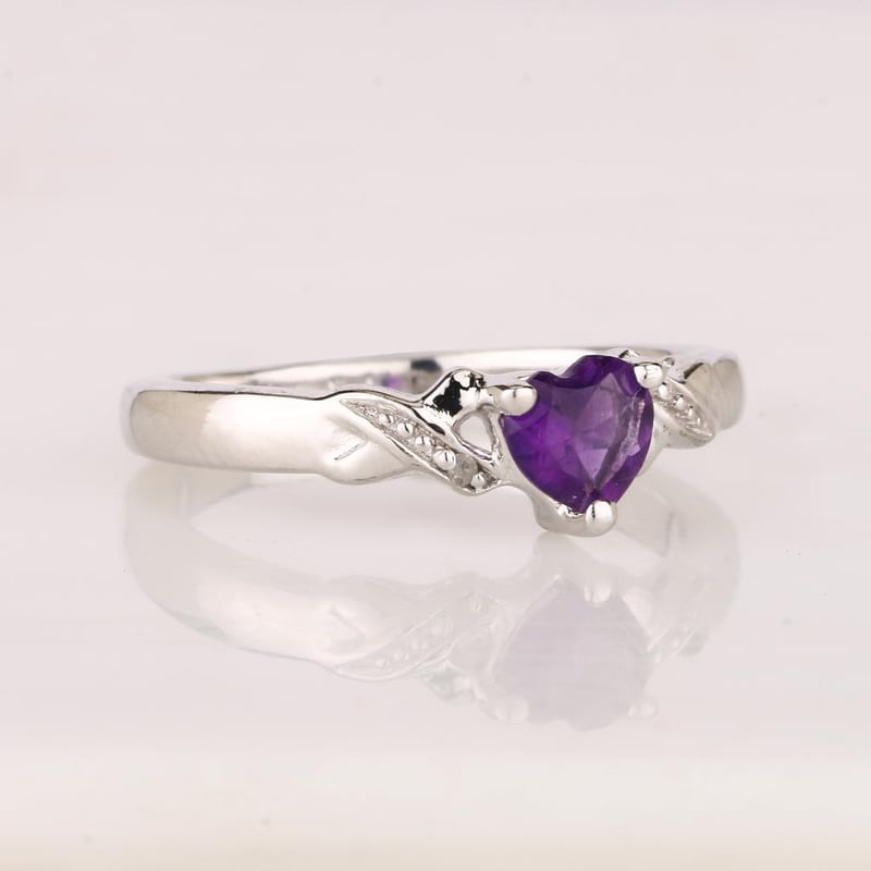 Indulge in a piece that captures the essence of love and sophistication with this exquisite ring featuring a stunning heart-shaped African amethyst, measuring 5.00mm. This captivating gem, celebrated for its rich, regal purple hue, radiates a sense of tranquility and passion, making it the perfect centerpiece for any occasion.