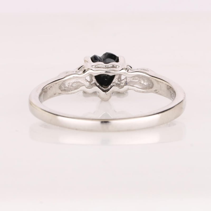 Elegance in Contrast: Heart-Shaped Black Sapphire and White Diamond Ring