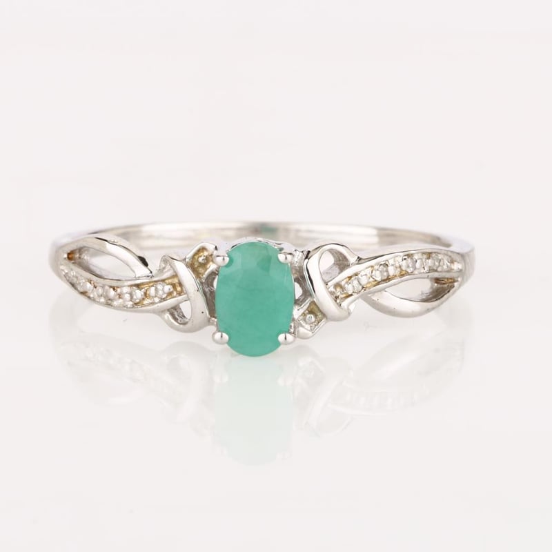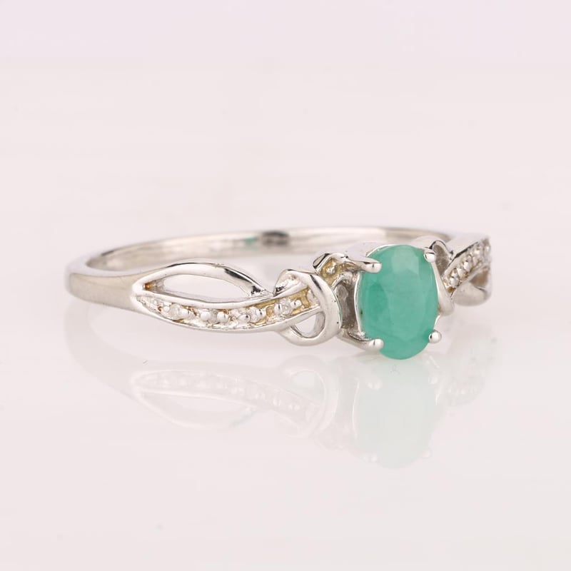 Indulge in the luxurious allure of this exquisite ring, featuring a stunning Sakota Emerald oval at 6x4mm, elegantly framed by eight scintillating round white diamonds, each measuring 0.80mm. The emerald, with its rich green hue, evokes the tranquil beauty of nature, symbolizing renewal and growth, while the brilliant diamonds add a touch of timeless sophistication, reflecting light with every movement.