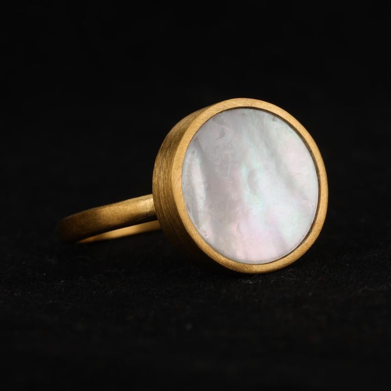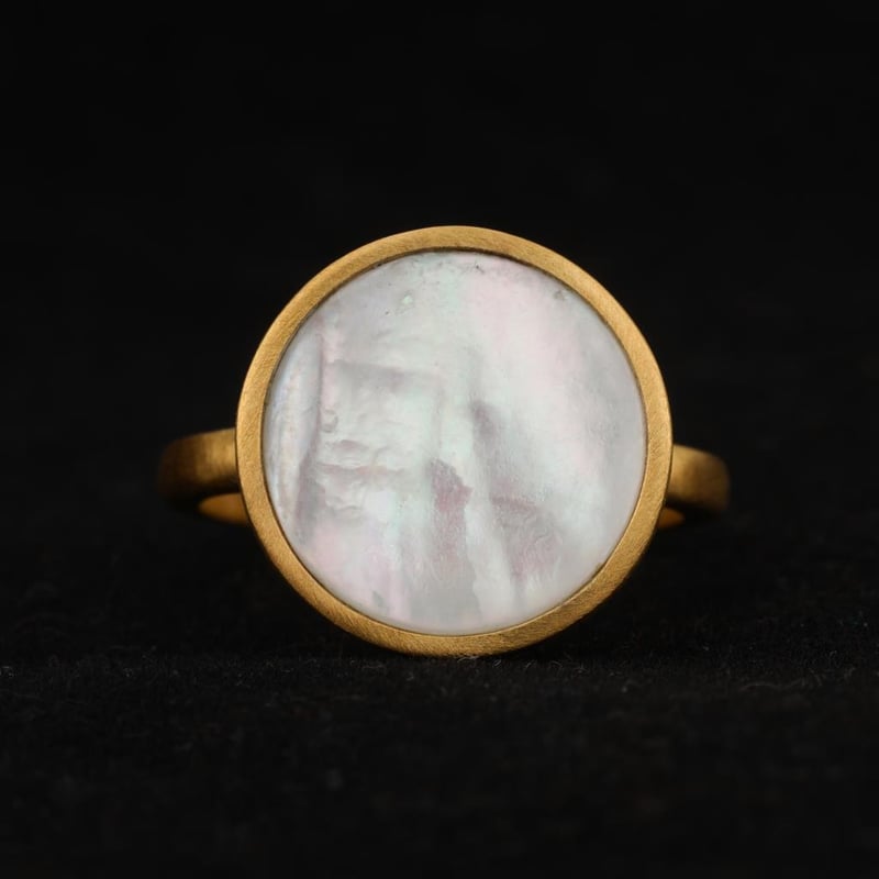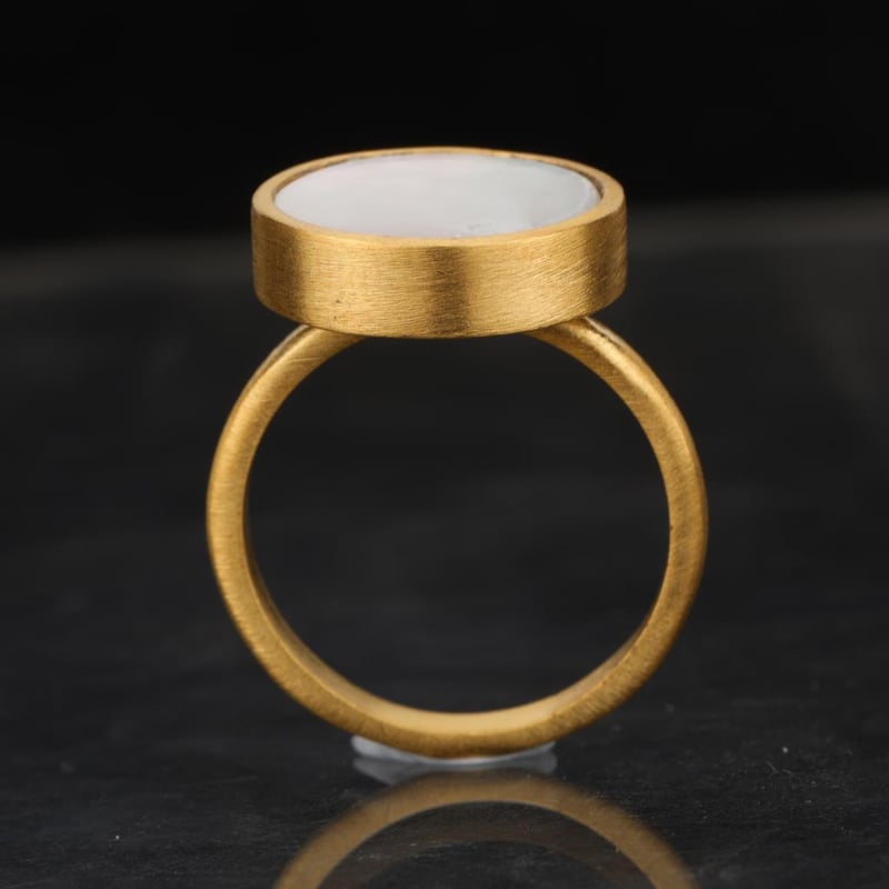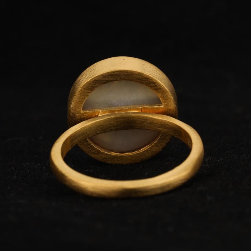 The matte finish enhances the stone's natural beauty, offering a unique texture that contrasts beautifully with the smoothness of its round shape. Measuring 2.00mm in height and set in a thoughtfully designed band that is 3mm deep, this ring promises a comfortable fit while making a striking statement.