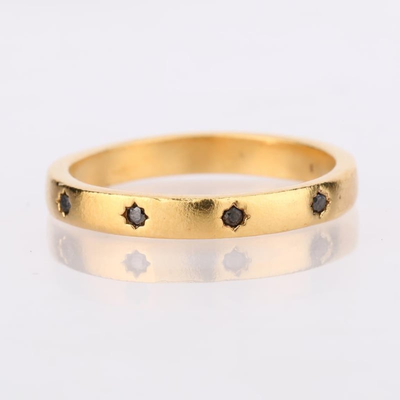 Indulge in the allure of sophistication with this stunning Black Diamond Eternity Band, featuring four meticulously set round black diamonds, each measuring 1.20mm, that exude an air of mystery and elegance. The band, with a refined width of 2.60mm, offers a delicate yet sturdy frame that beautifully showcases the captivating sparkle of the diamonds.
