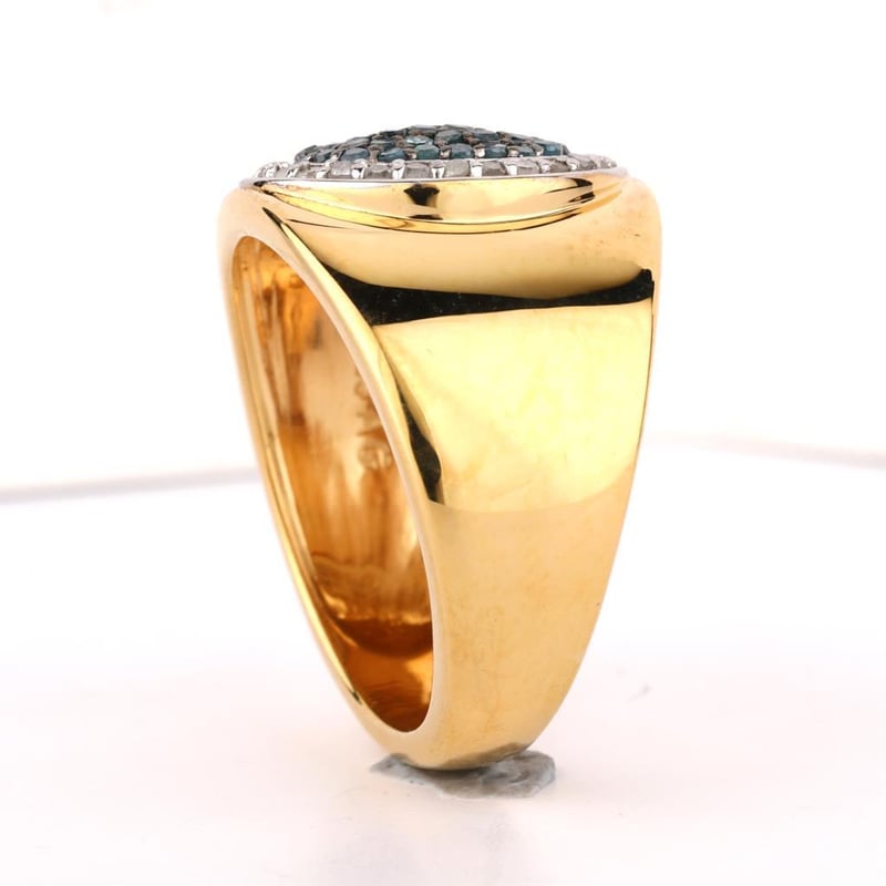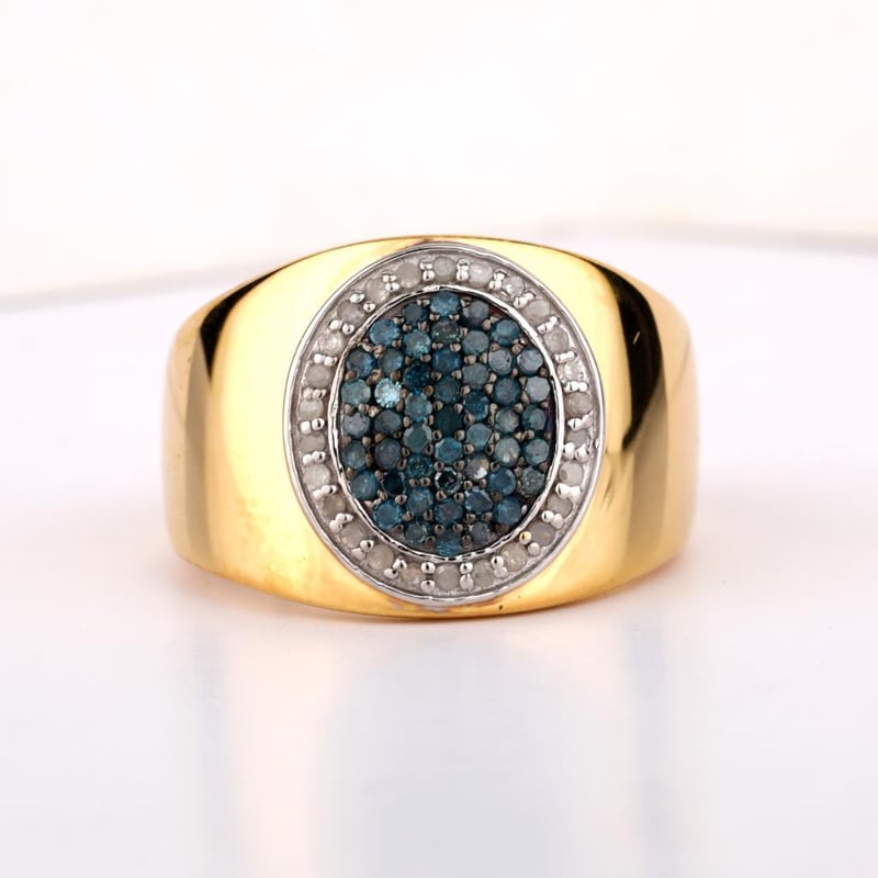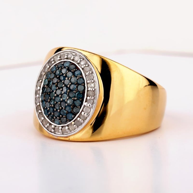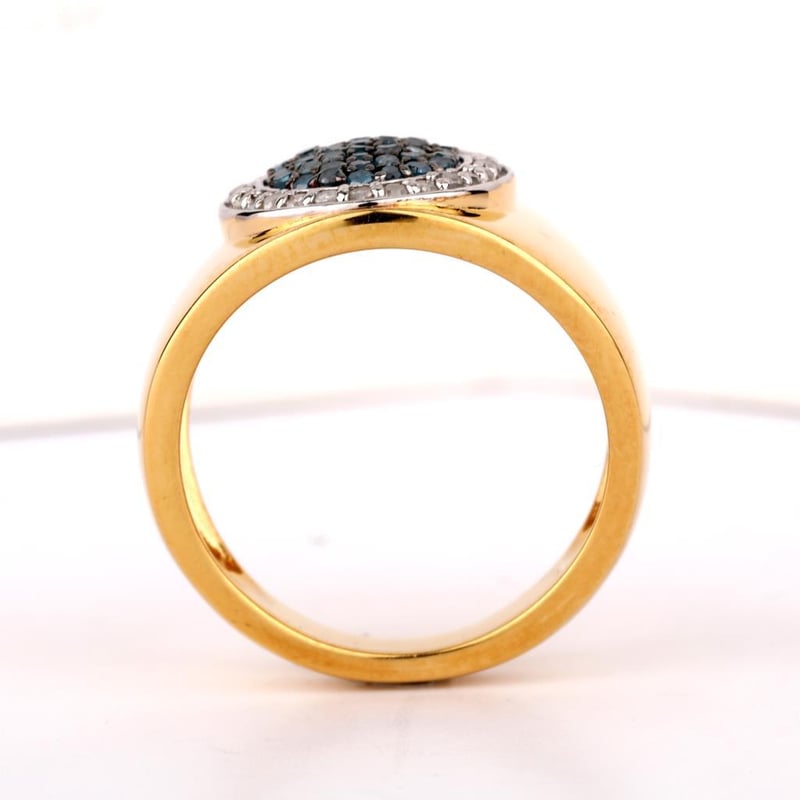 Set in lustrous rhodium plating—both blue and white—this ring exudes an air of sophistication and glamour. The blue diamonds, with a clarity of I2-I3, offer a unique character, showcasing the raw beauty of the gemstones, while the white diamonds, graded IJ in color and I1-I3 in clarity, enhance the overall brilliance of the piece.