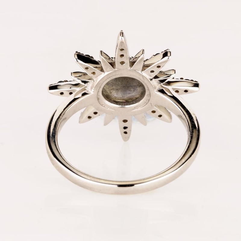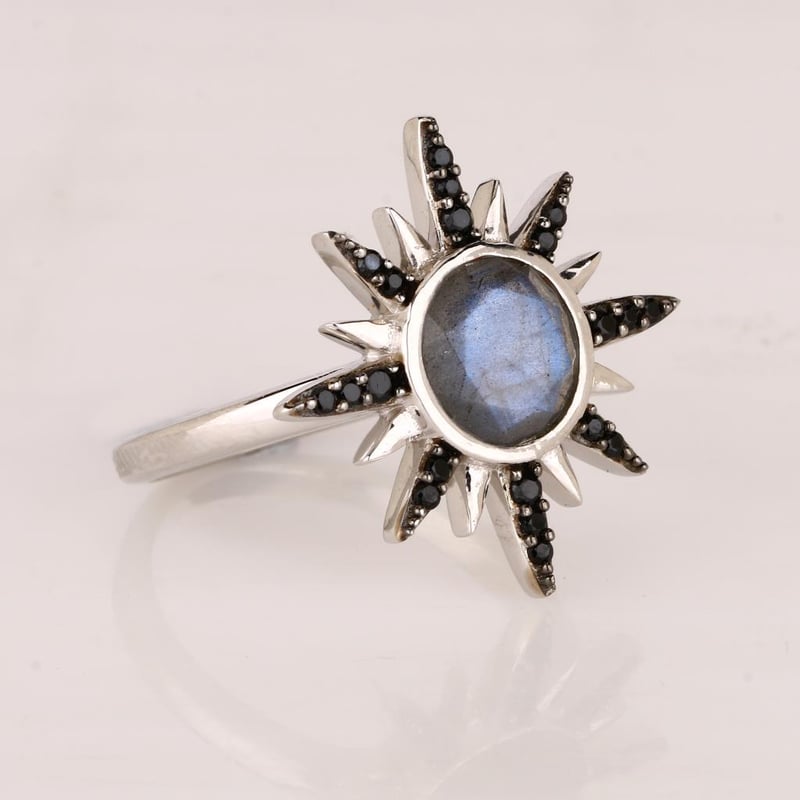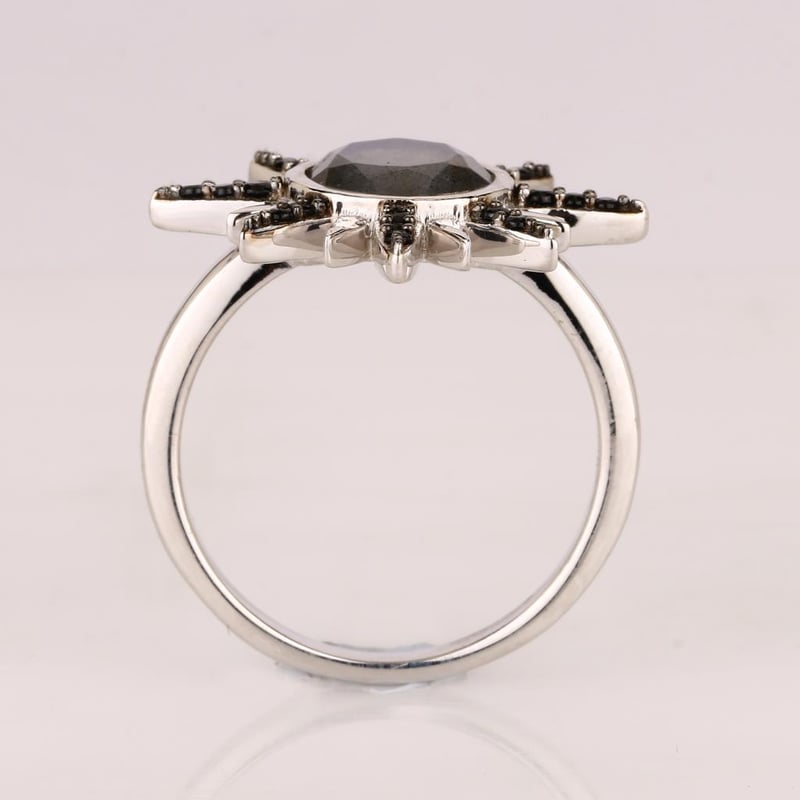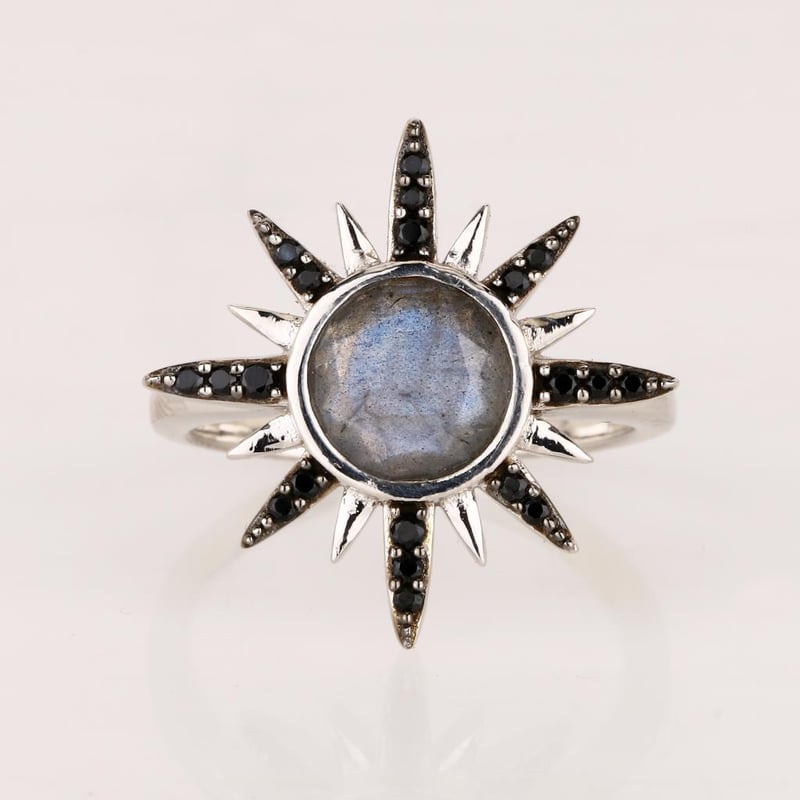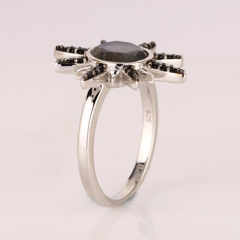 Ethereal Elegance: Labradorite and Black Spinel Statement Ring