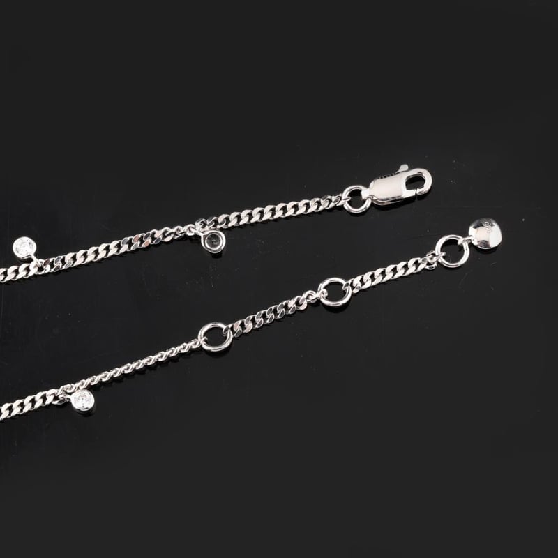 The bracelet is further enhanced by three meticulously crafted external round jump rings, each measuring 3.70mm in diameter and 0.70mm in thickness, ensuring durability and a seamless fit for any wrist. The harmonious combination of shimmering white topaz and the sleek chain creates a sophisticated statement piece that effortlessly transitions from day to night.