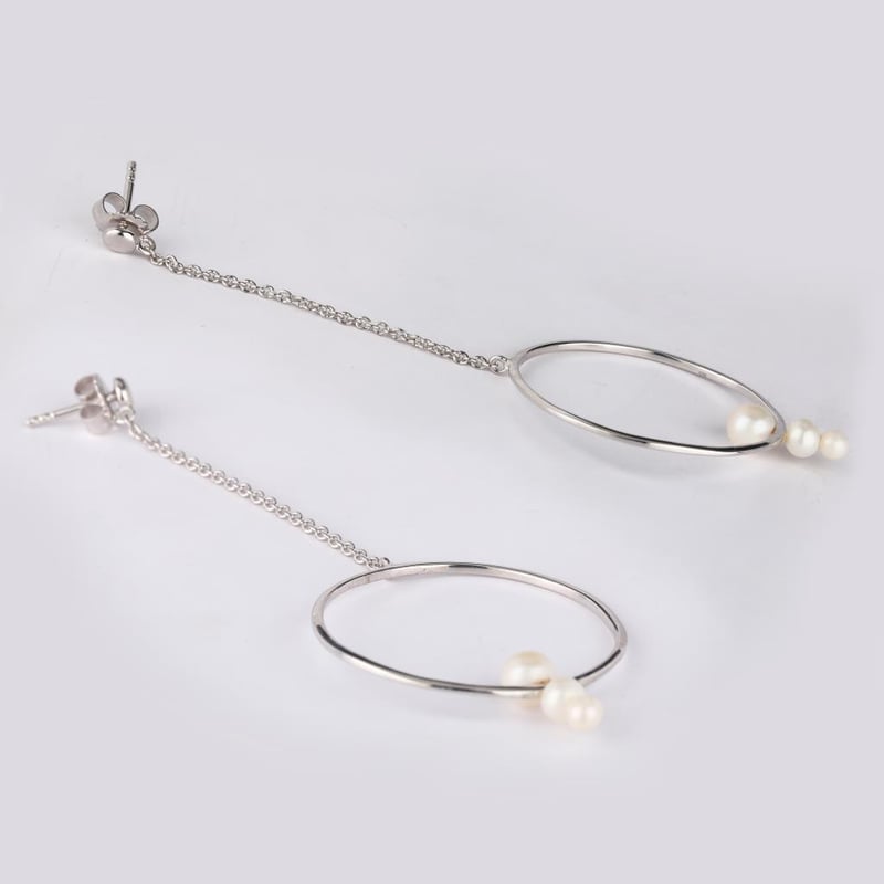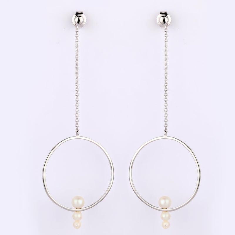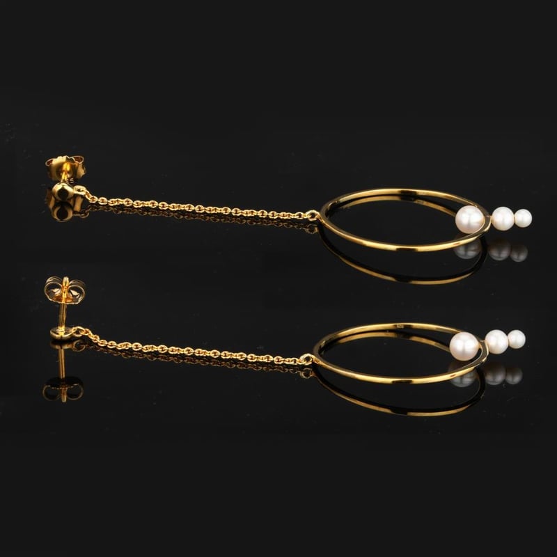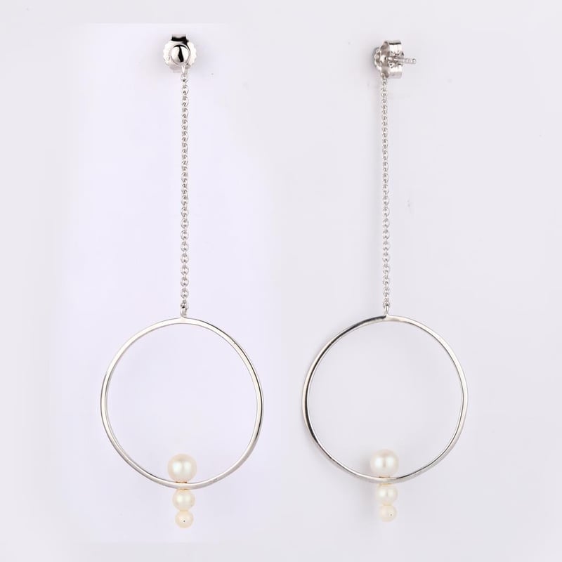 Indulge in the timeless beauty of this exquisite pair of earrings, showcasing a harmonious trio of lustrous Fresh Water Pearls. Crafted to perfection, each pearl is a unique treasure from nature, radiating a soft, iridescent glow that captures the light beautifully.