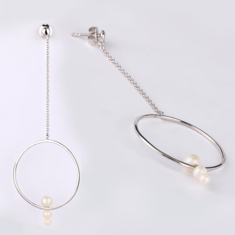 The set features a stunning half-drill 5.00mm pearl, perfectly balanced by a delicate full-drill 4.00mm pearl, and a charming half-drill 3.00mm pearl, creating a captivating cascade of elegance. The varying sizes of the pearls add depth and dimension, ensuring these earrings will be a striking addition to any jewelry collection.