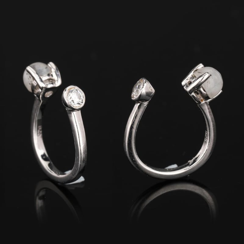 Step into a world of celestial beauty with this exquisite earring featuring a mesmerizing 4.00mm round White Rainbow Moonstone, delicately paired with a brilliant 2.50mm round White Cubic Zirconia. The moonstone, renowned for its enchanting play of light and iridescent hues, captures the essence of a moonlit night, radiating a soft glow that dances with every movement.