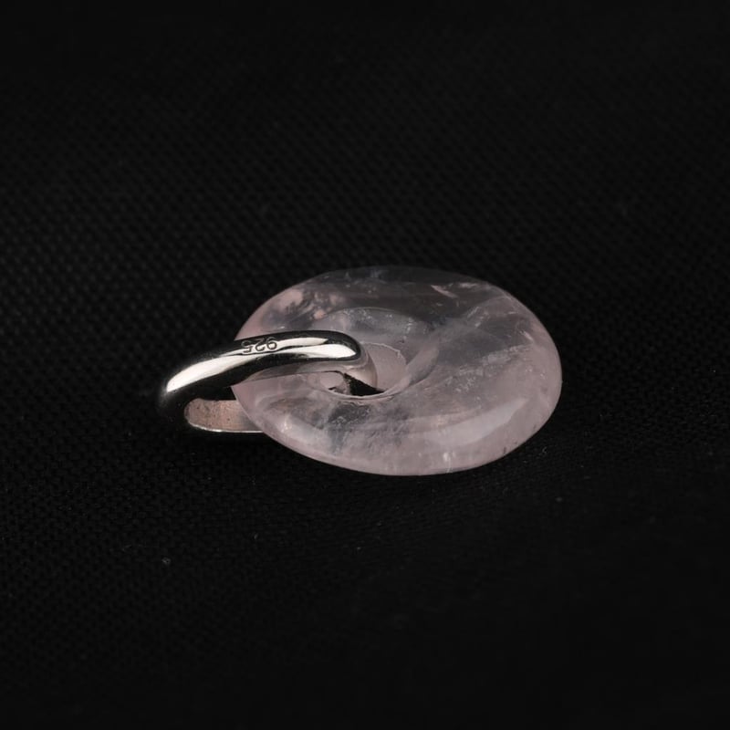 Indulge in the ethereal beauty of this exquisite Rose Quartz pendant, elegantly crafted in a captivating donut shape. Measuring a perfect 12.00mm, this stunning piece embodies the serene charm and soothing energy of one of nature's most beloved gemstones.