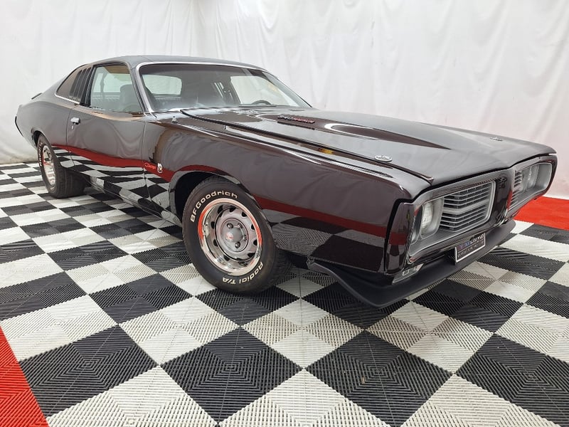 A classic example of Chrysler’s mid-1970s American muscle, this 1974 Dodge Charger SE is presented in Black Cherry with an indicated 96,996 miles. A left-hand-drive coupe powered by a 318ci (5.2-litre) V8 and automatic transmission, it remains an iconic representation of the Charger’s evolution into a more refined yet still muscular grand touring model.