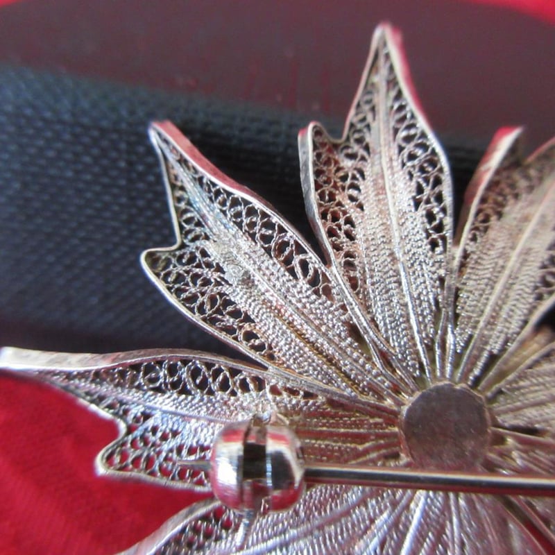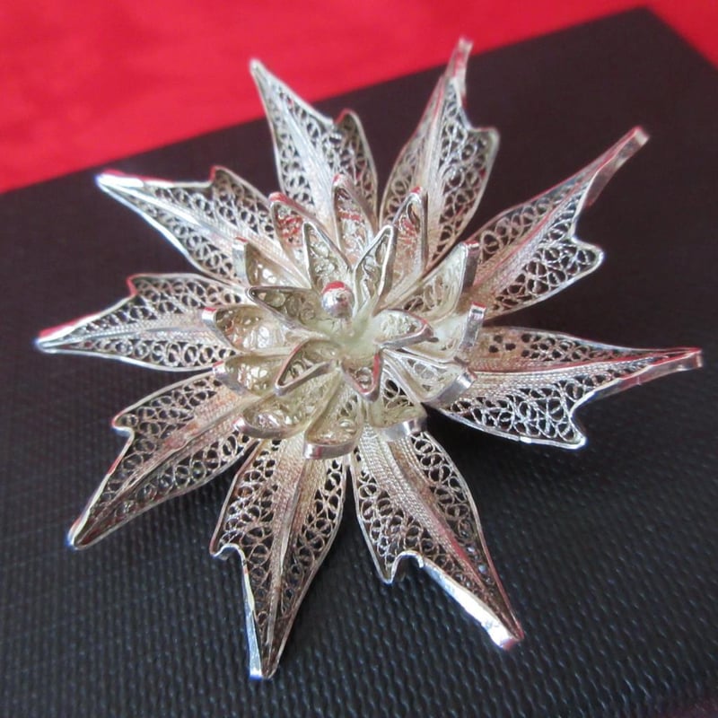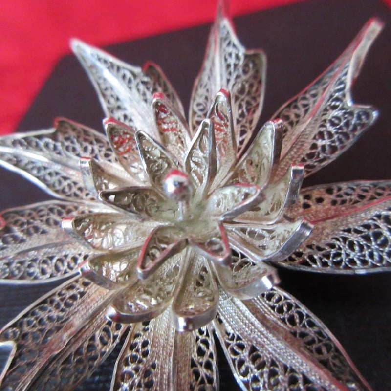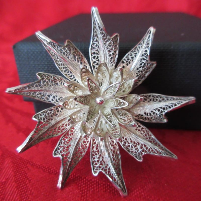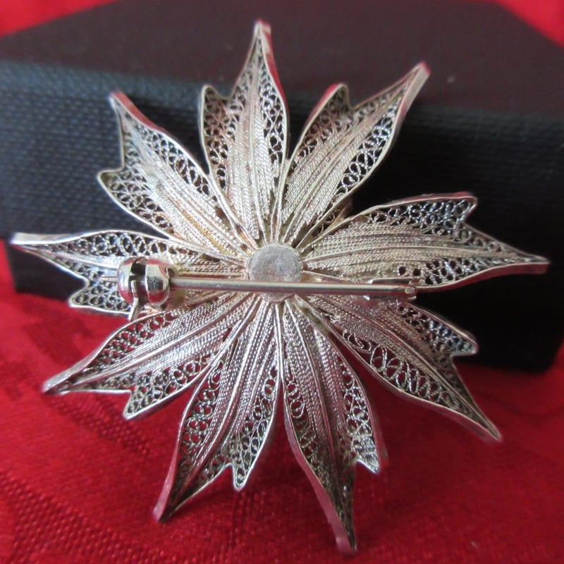 Estate Large Spun Silver Poinsettia Brooch (approx 45mm diameter) (Boxed)