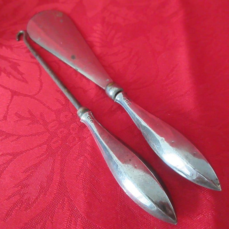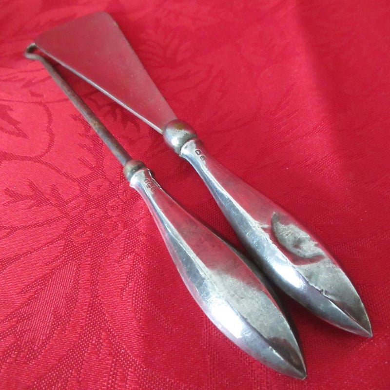 Estate Antique Sterling Silver Handle Button Hook & Shoe Horn Set (Hallmarked - refer photos) (Largest approx 18cm long) (Sold as lot)