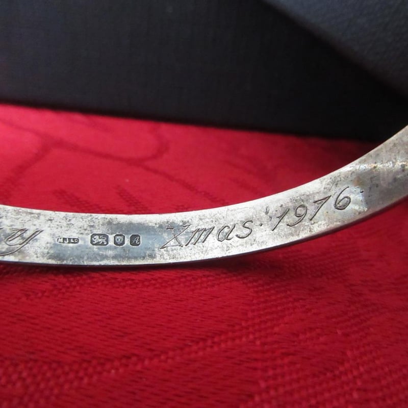 Estate Vintage Sterling Silver English Hallmarked Adjustable Bangle (Stamped - Refer photos) (Inscribed "Cathy Xmas 1976")(Boxed)