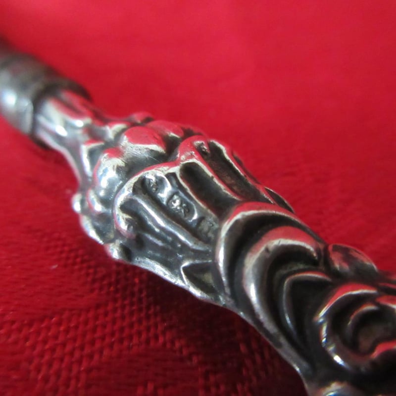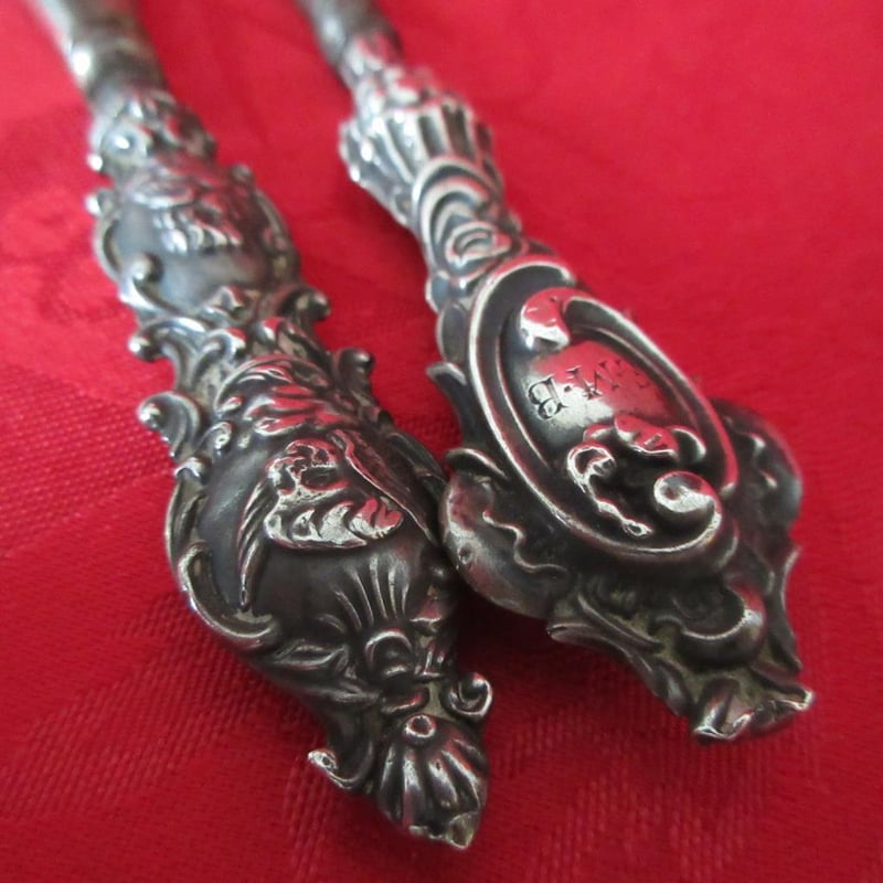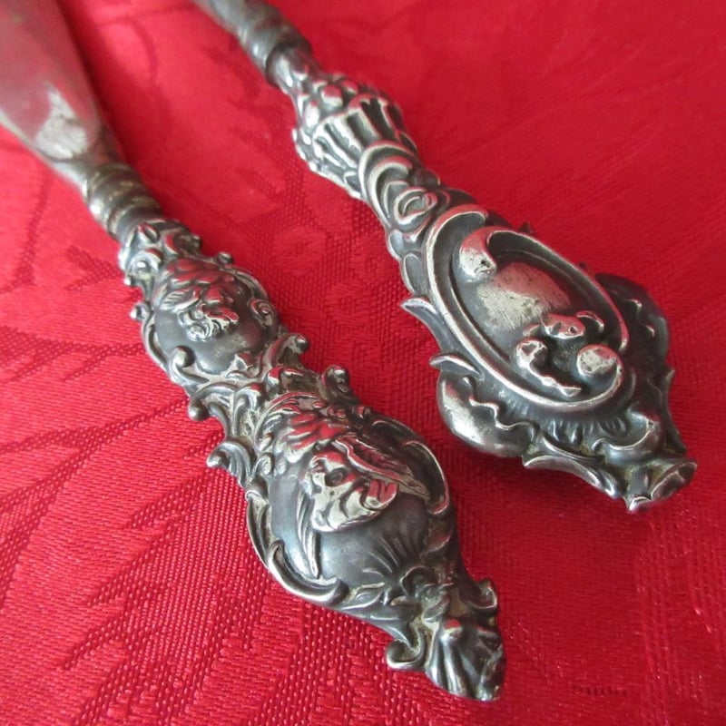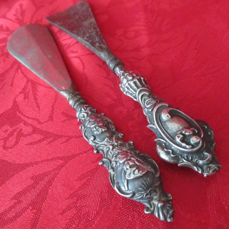 Estate Antique Sterling Silver Handle Ornately Embossed Shoe Horns (Hallmarked - refer to photos) (each approx 17cm long) (Sold as lot and as is)