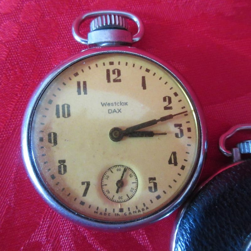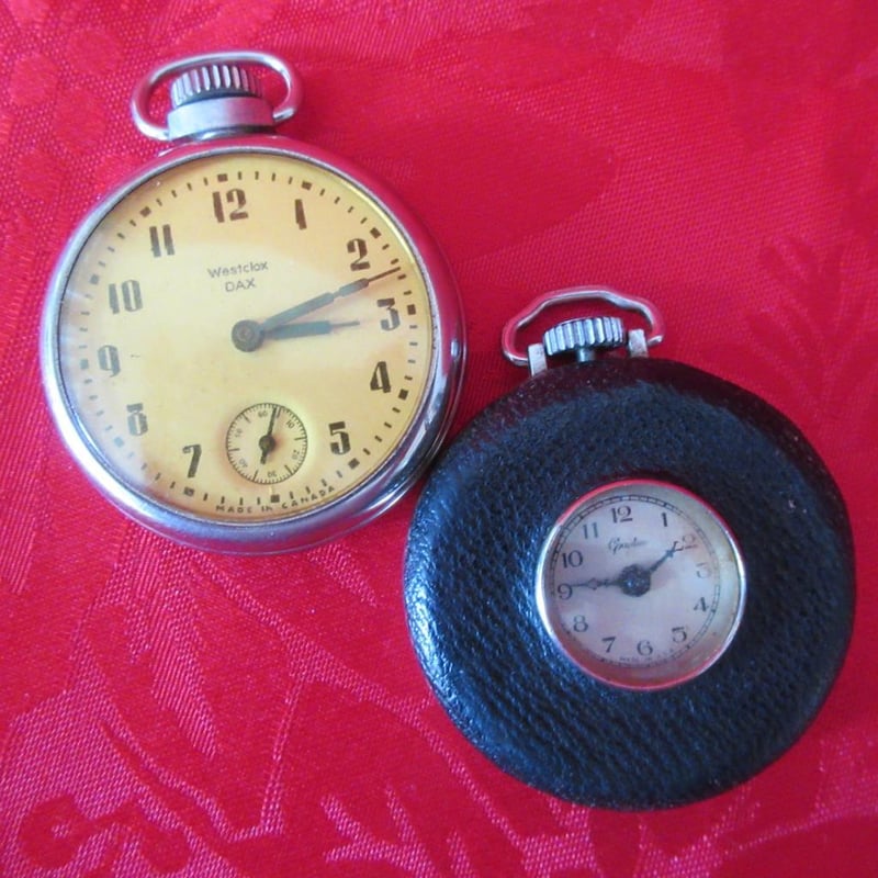 Estate (2) x Vintage Pocket Watches - Westclox DAX Made in Canada + Grudiac Made in USA (Velvet Storage Bags) (Sold as lot and as is)