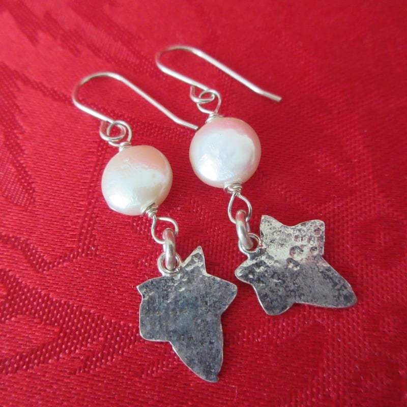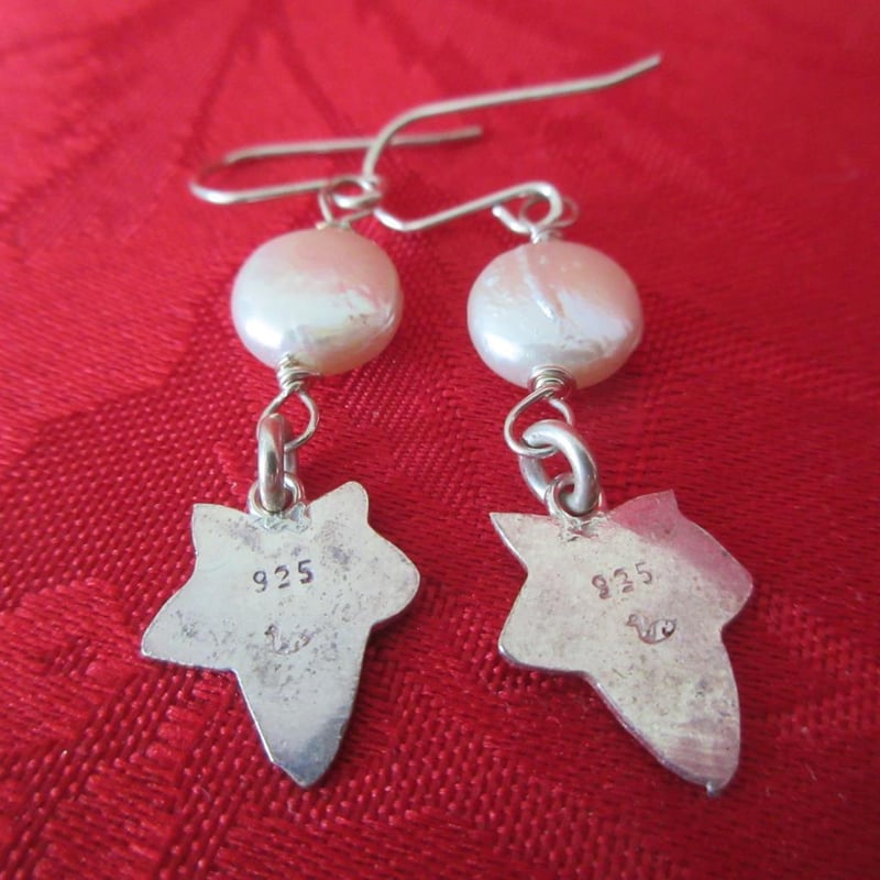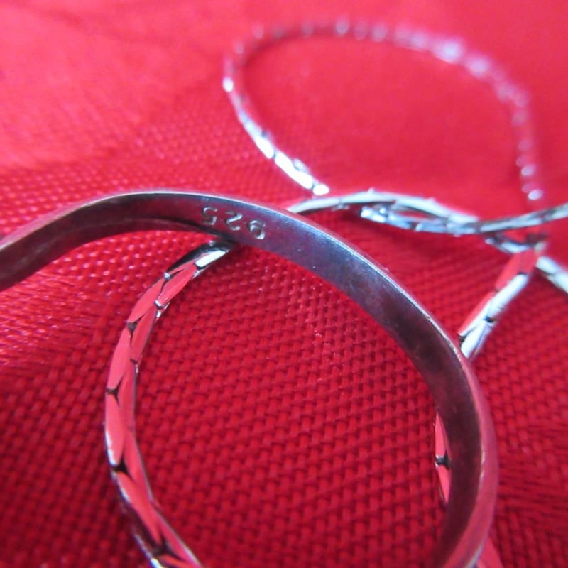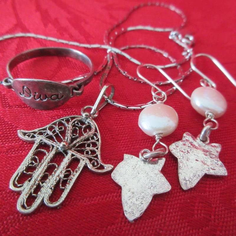 Estate Sterling Silver Natural Pearl Drop Earrings (925) + Sterling Silver DIVA Ring (925) + Eastern Spun Silver Pendant on Chain (Velvet Storage Bags) (Sold as lot)