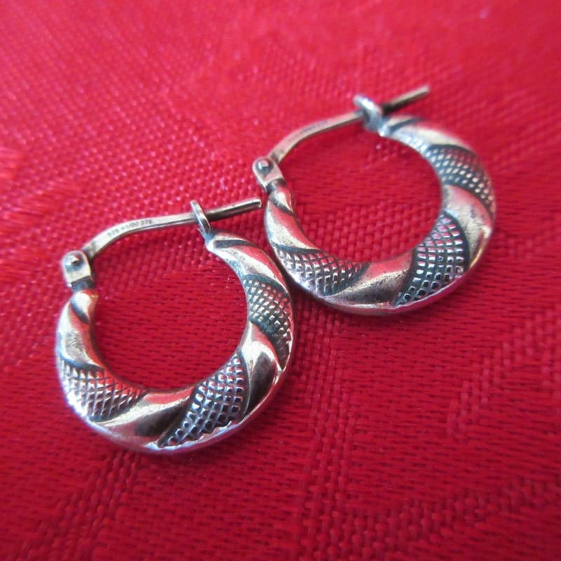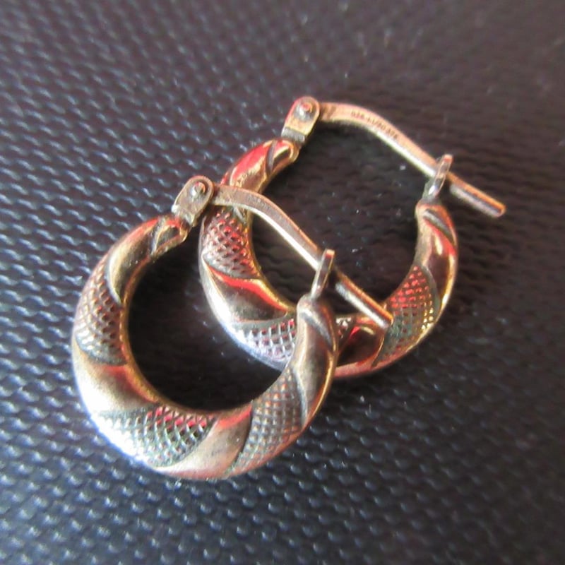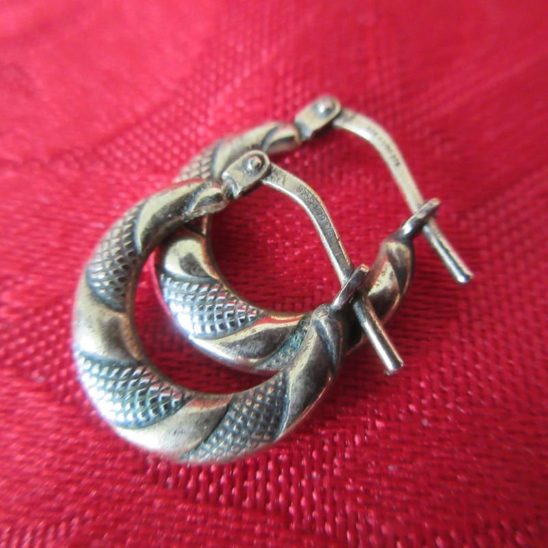 Estate Gold Plated Sterling Silver Two Colour Earrings (Stamped 925 1/20 375 Earrings) (Boxed)