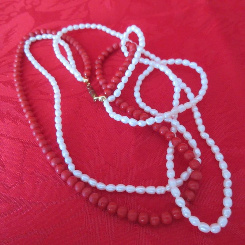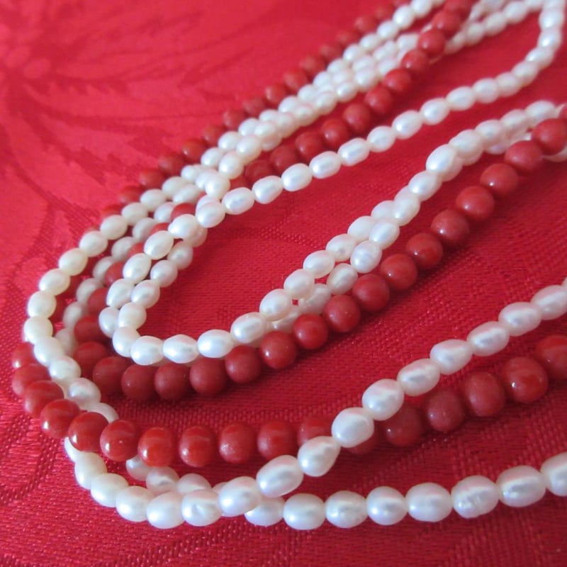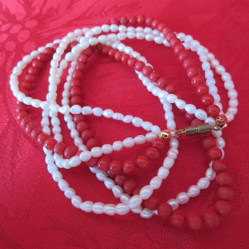 Vintage Estate Coral & Seed Pearl Necklace With Barrel Clasp (Boxed)