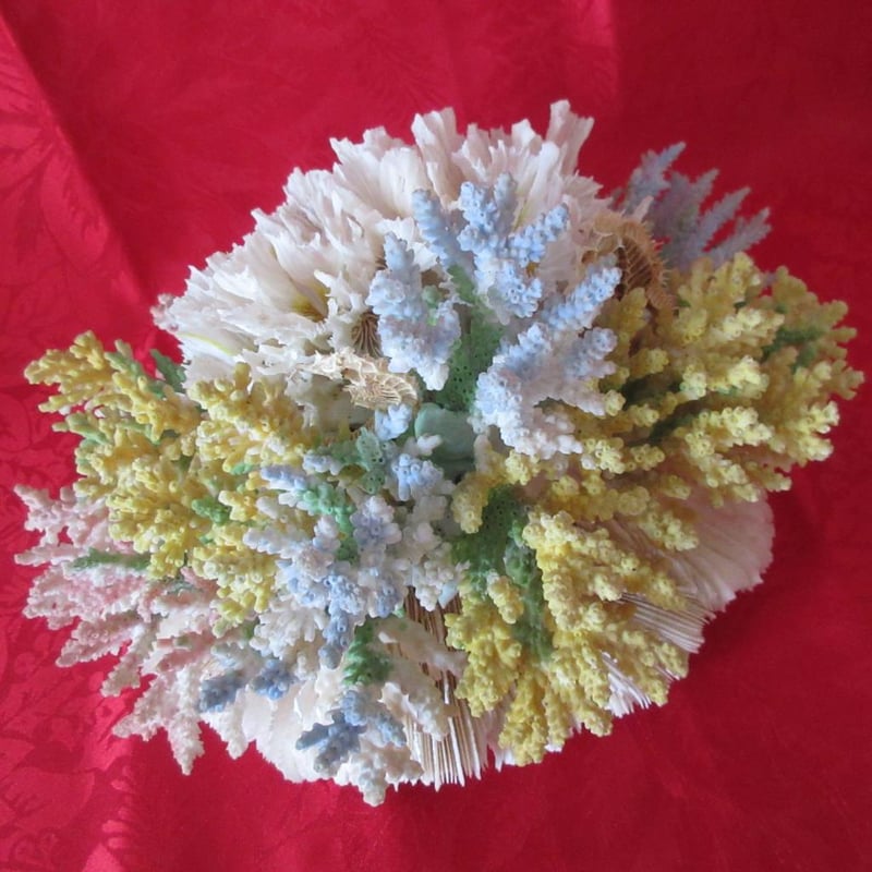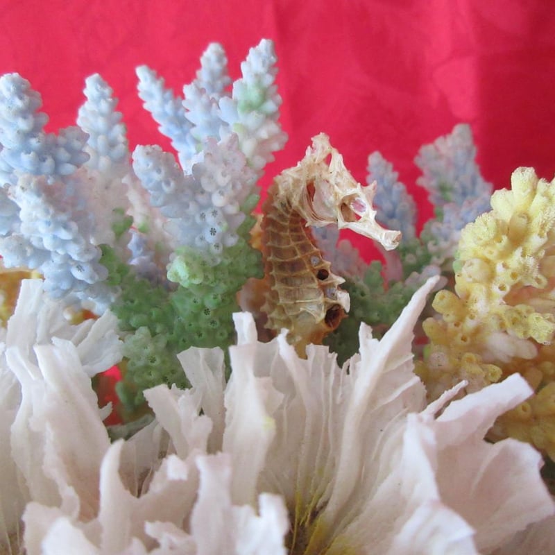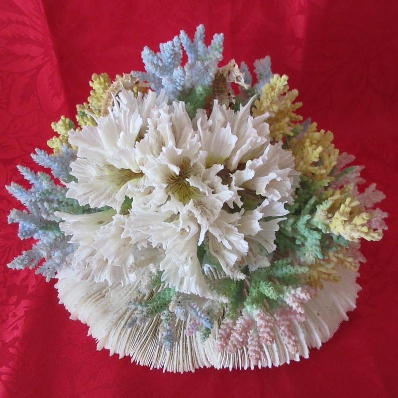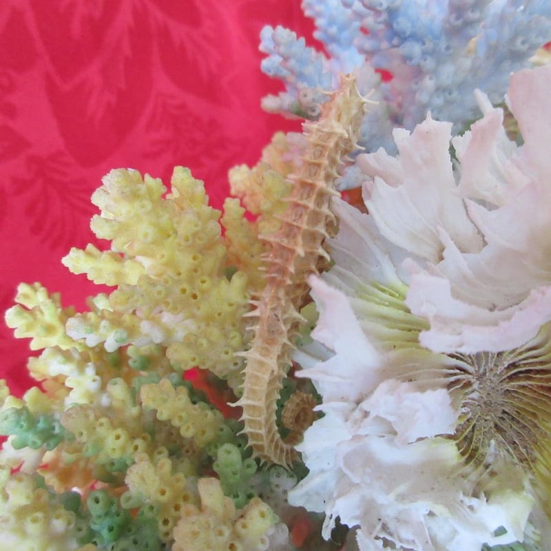Beautiful Vintage Large Coral Arrangement Including Seahorses (approx 24cm wide x 16cm tall)