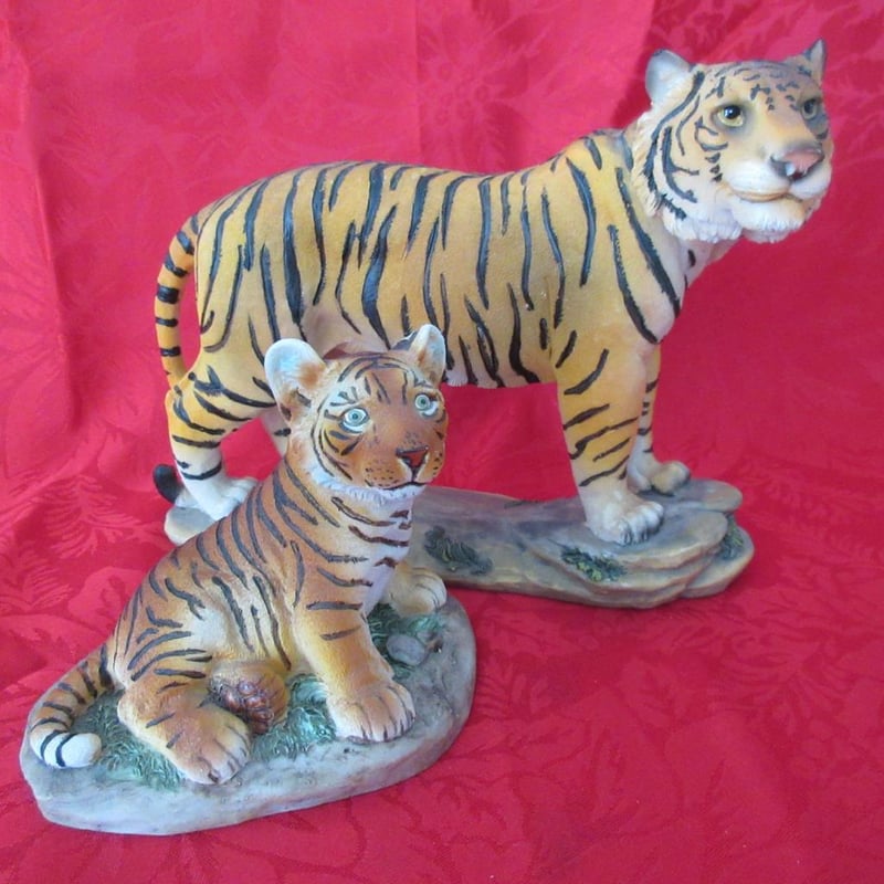 Estate Tiger Figure (approx 22cm long) + Juvenile Tiger Figure (Sold as lot)