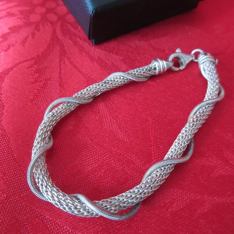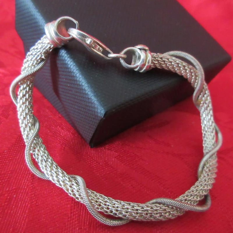 Estate Sterling Silver Mesh Entwined Bracelet (925) (Boxed)
