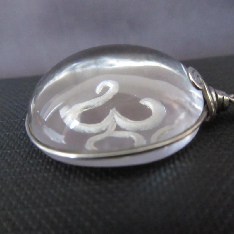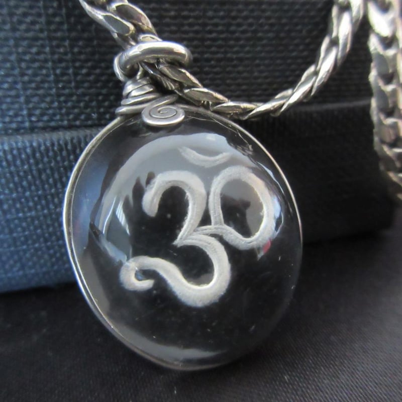 Vintage Estate Large "30" Domed Crystal Cabachon Intaglio Pendant & Chain (Refer Photos) (Boxed)