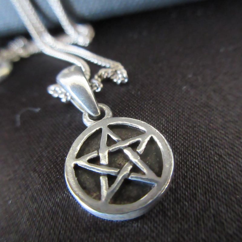 Estate Pentagram Sterling Silver Pendant (Stamped 925 & Other Hallmark) On Fine Chain (Boxed)