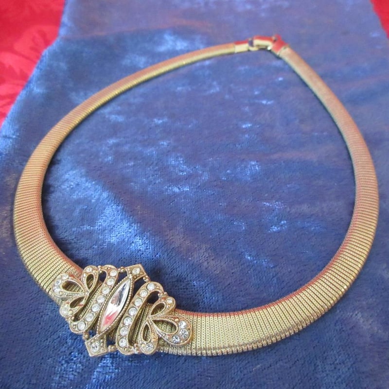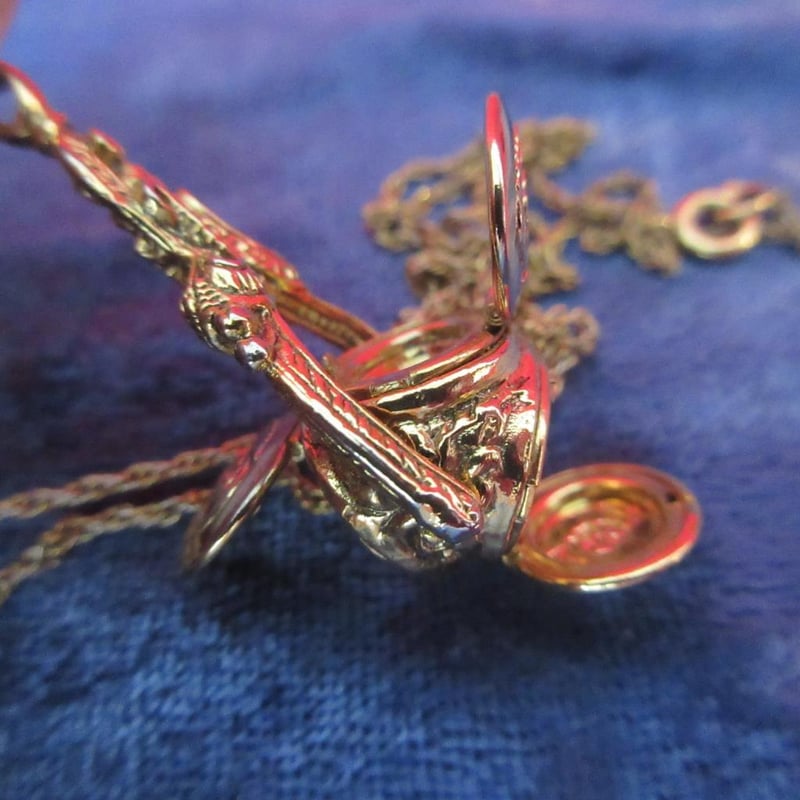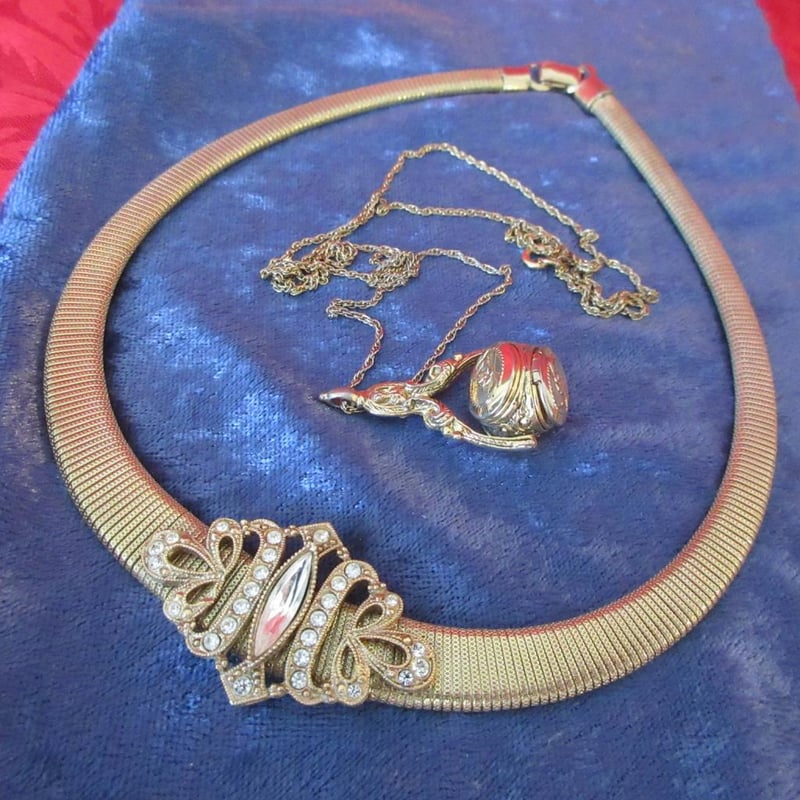 Estate Vintage Snake Chain Ornate Necklace + Three Photo Locket Spinner Pendant on Chain (Velvet Storage Bags) (Sold as lot)