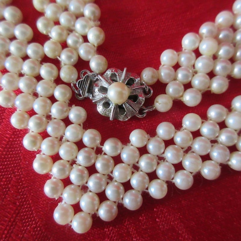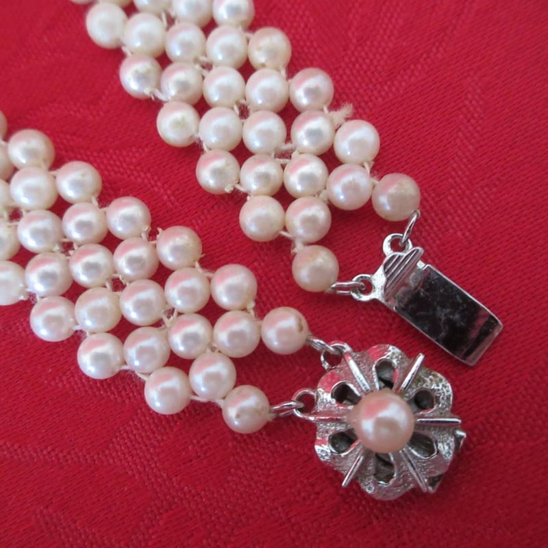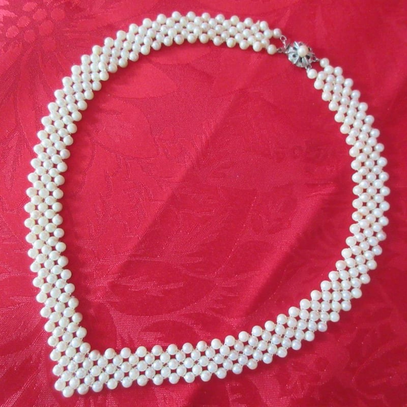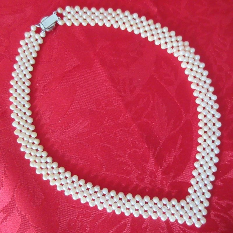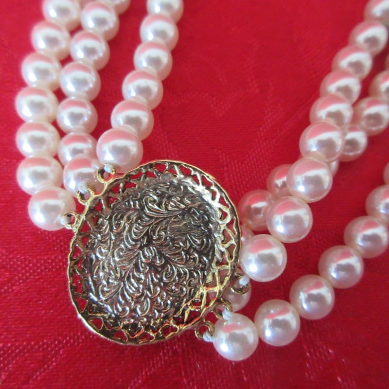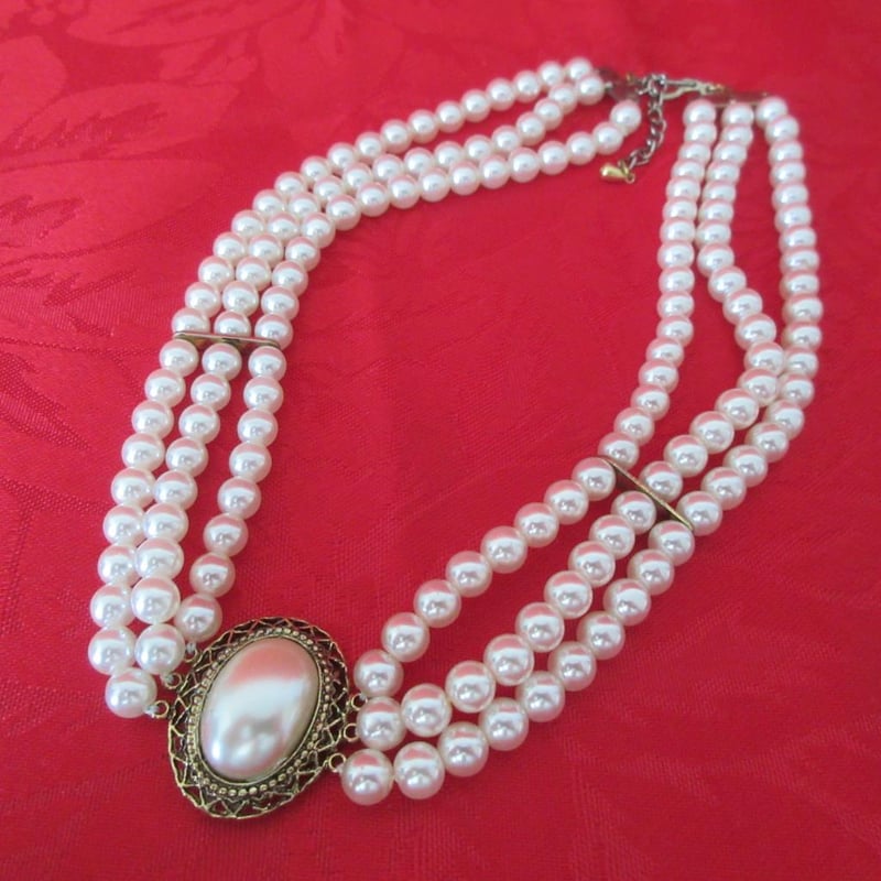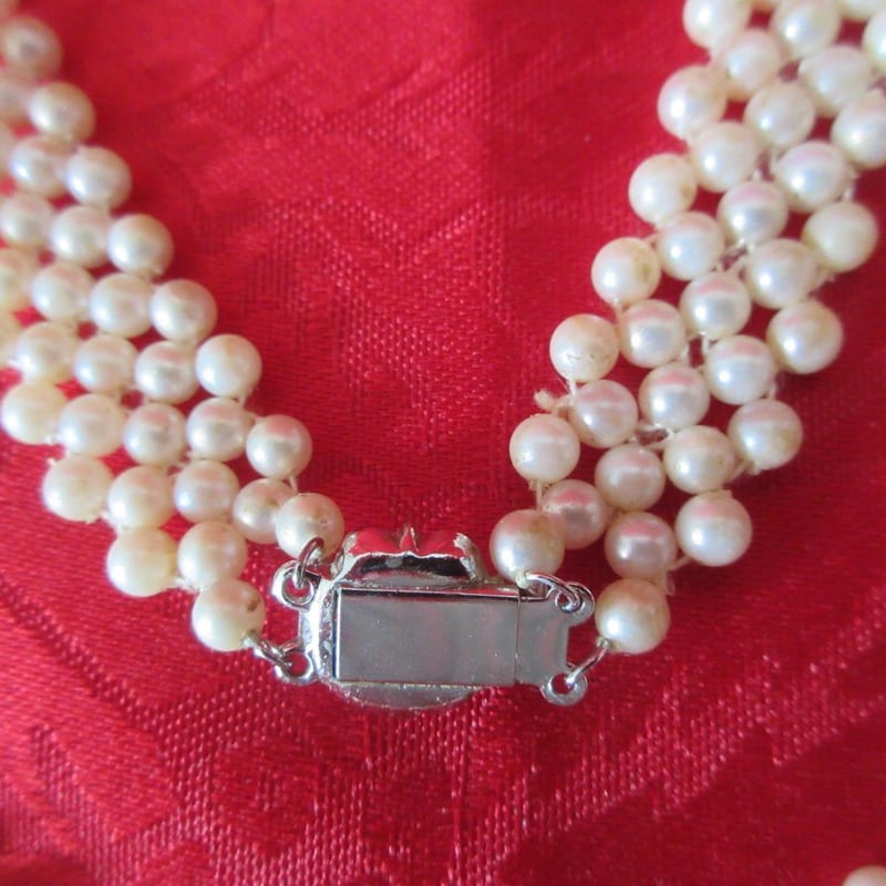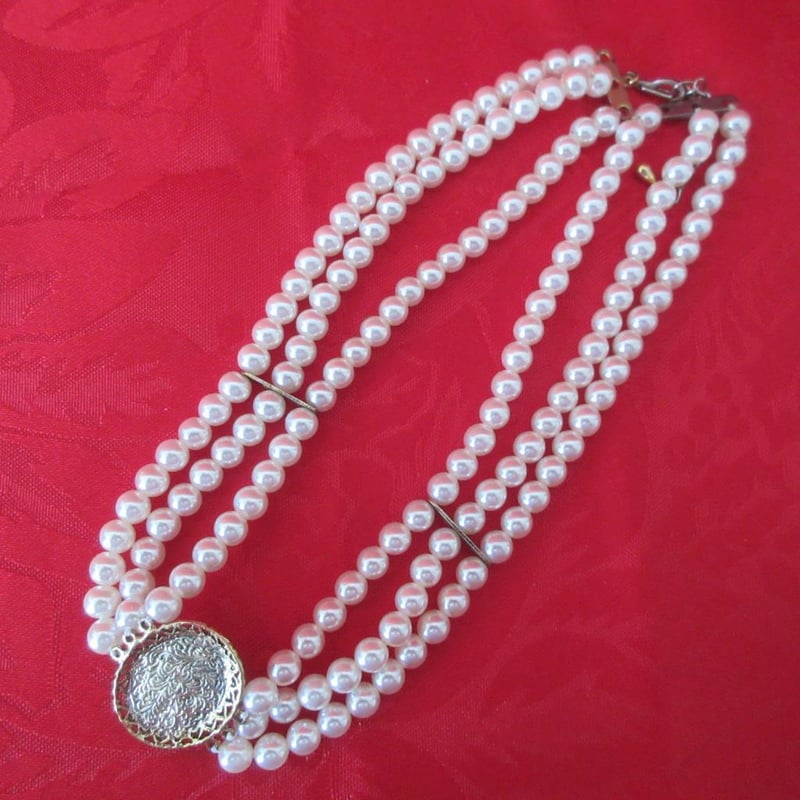Estate Vintage V-Neck Weave Necklace With Fancy Clasp (Refer photos) + Statement Three Strand Necklace (Velvet Storage Bags) (Sold as lot)