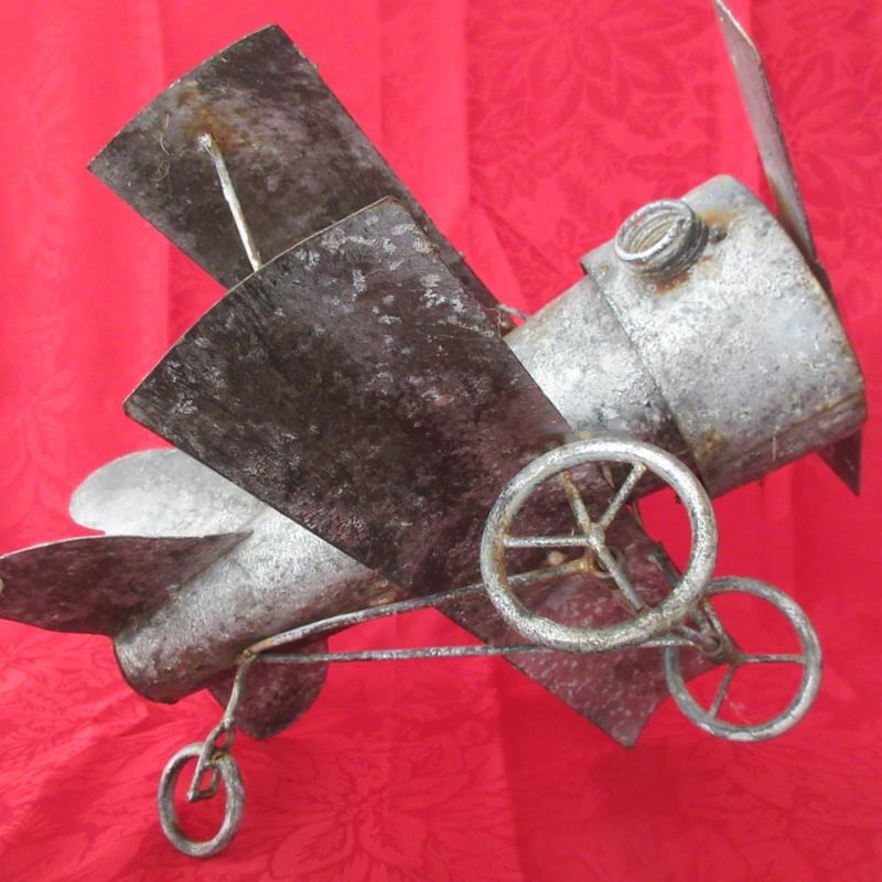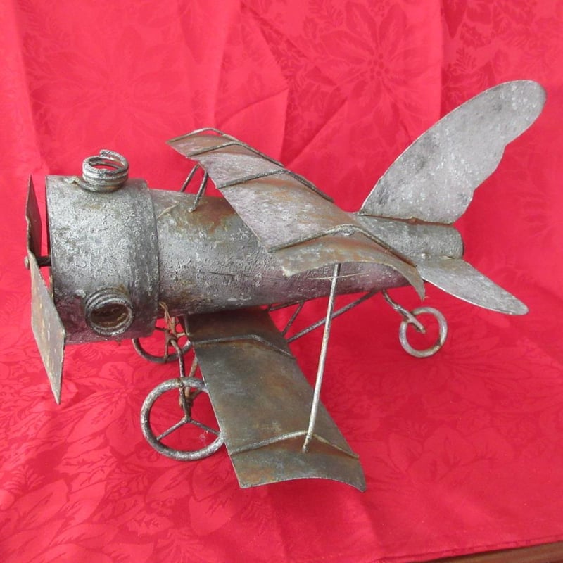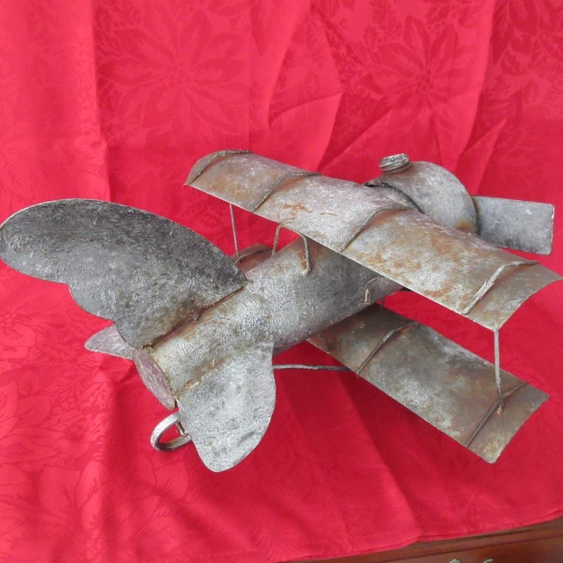 Estate "Shades of Those Magnificent Men In Their Flying Machines" Very Large Tin Plate Model of Bi-Plane (approx 39cm x 35cm)