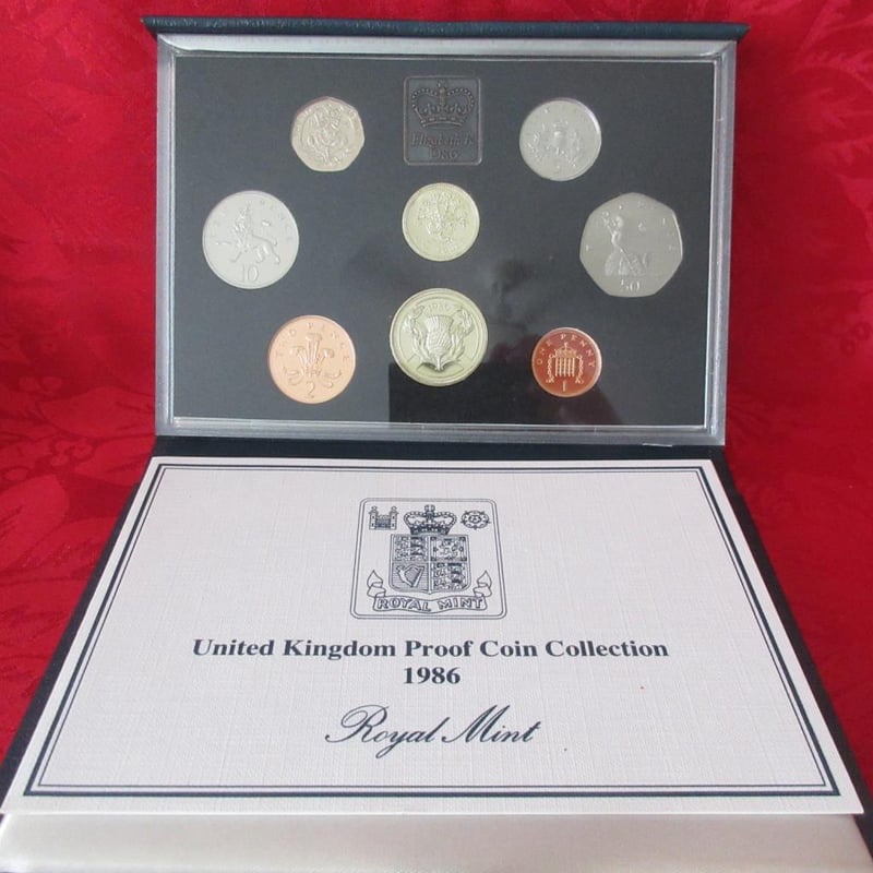 Estate C1986 UK Proof Coin Collection Royal Mint In Original Box (box approx 18cm x 13cm)