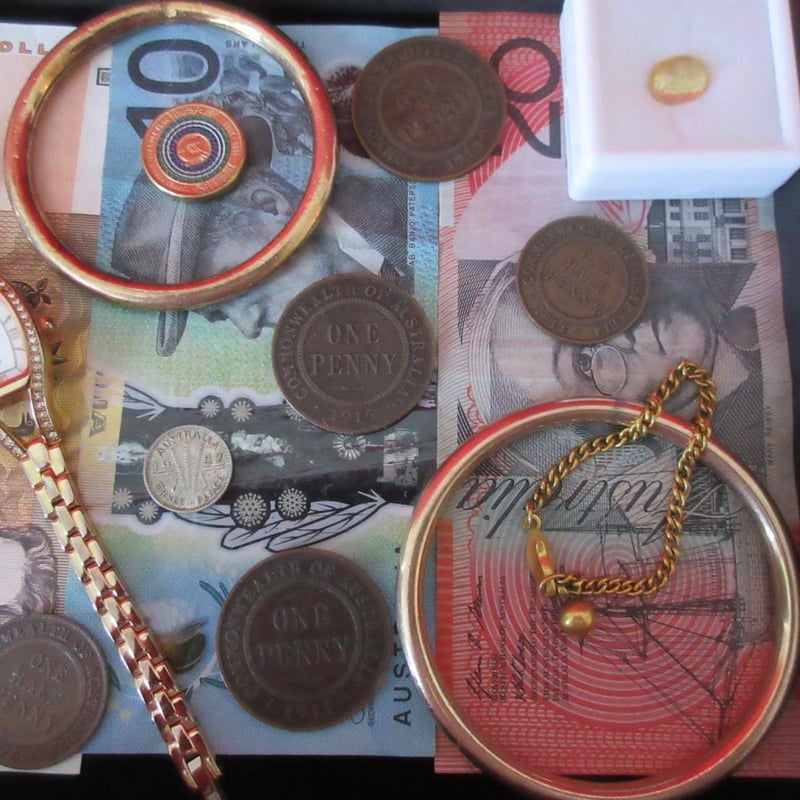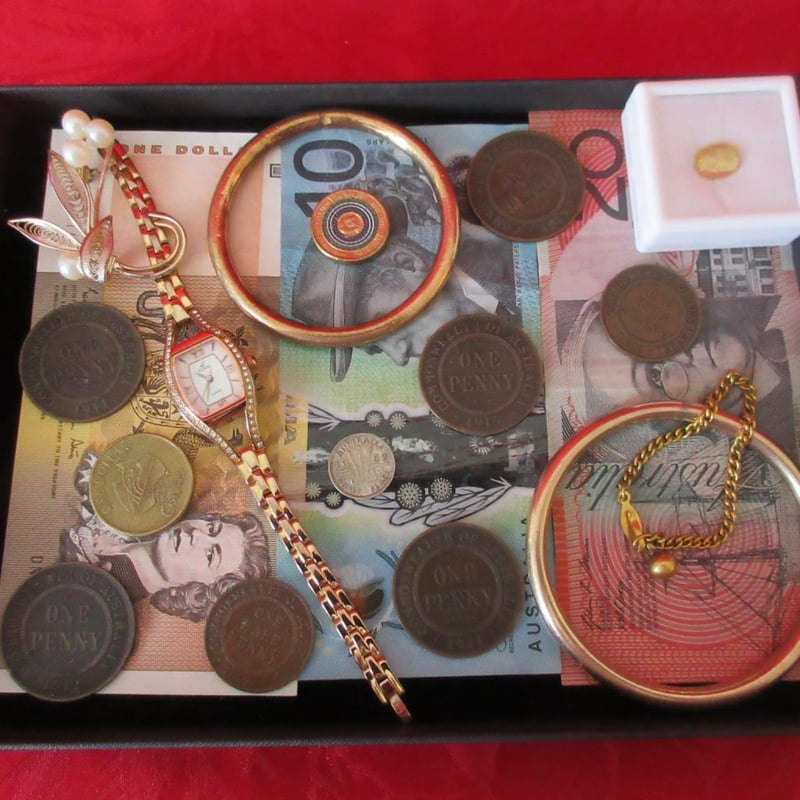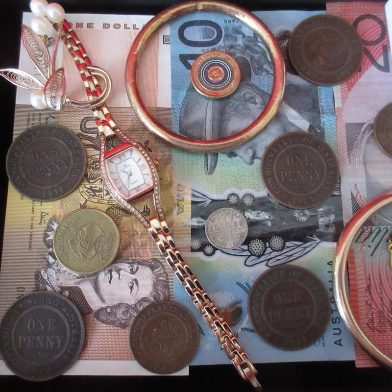 Estate Australian Bank Notes + Australian King George V Pennies + Low Mintage King George V Half Pennies + Jewellery Items (Sold as lot)