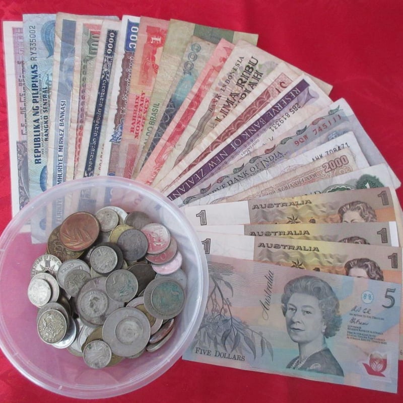 Estate Tub of Vintage Australian Silver & International Coins + Over (20) x Vintage Australian & International Bank Notes (Sold as lot)
