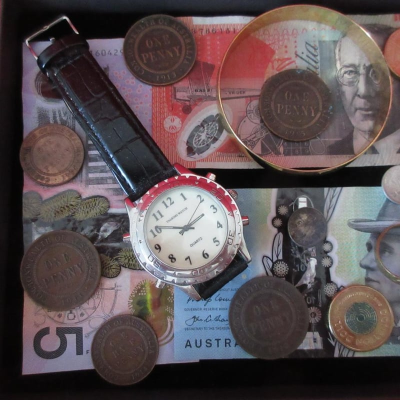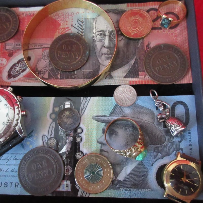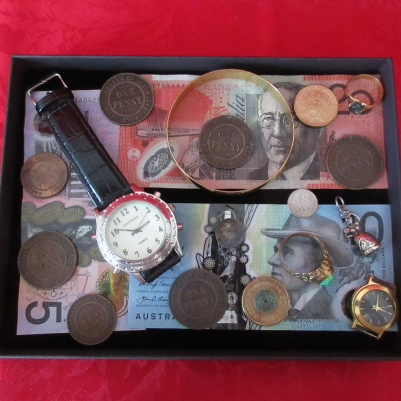 Estate Australian Bank Notes + Australian King George V Pennies + Low Mintage Australian King George V Half Pennies + Australian Silver Coins + Jewellery Items (Sold as lot)